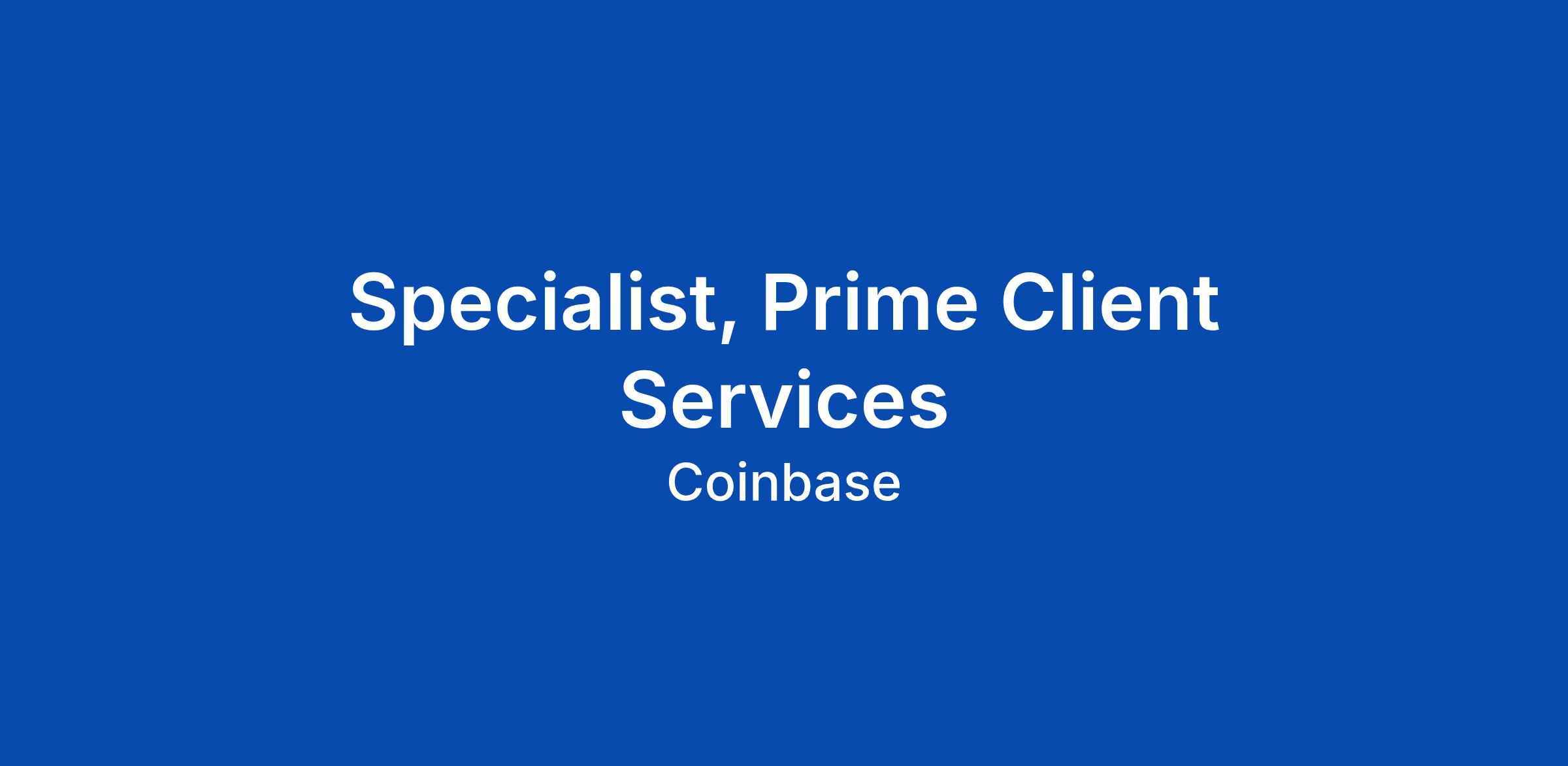 Specialist, Prime Client Services