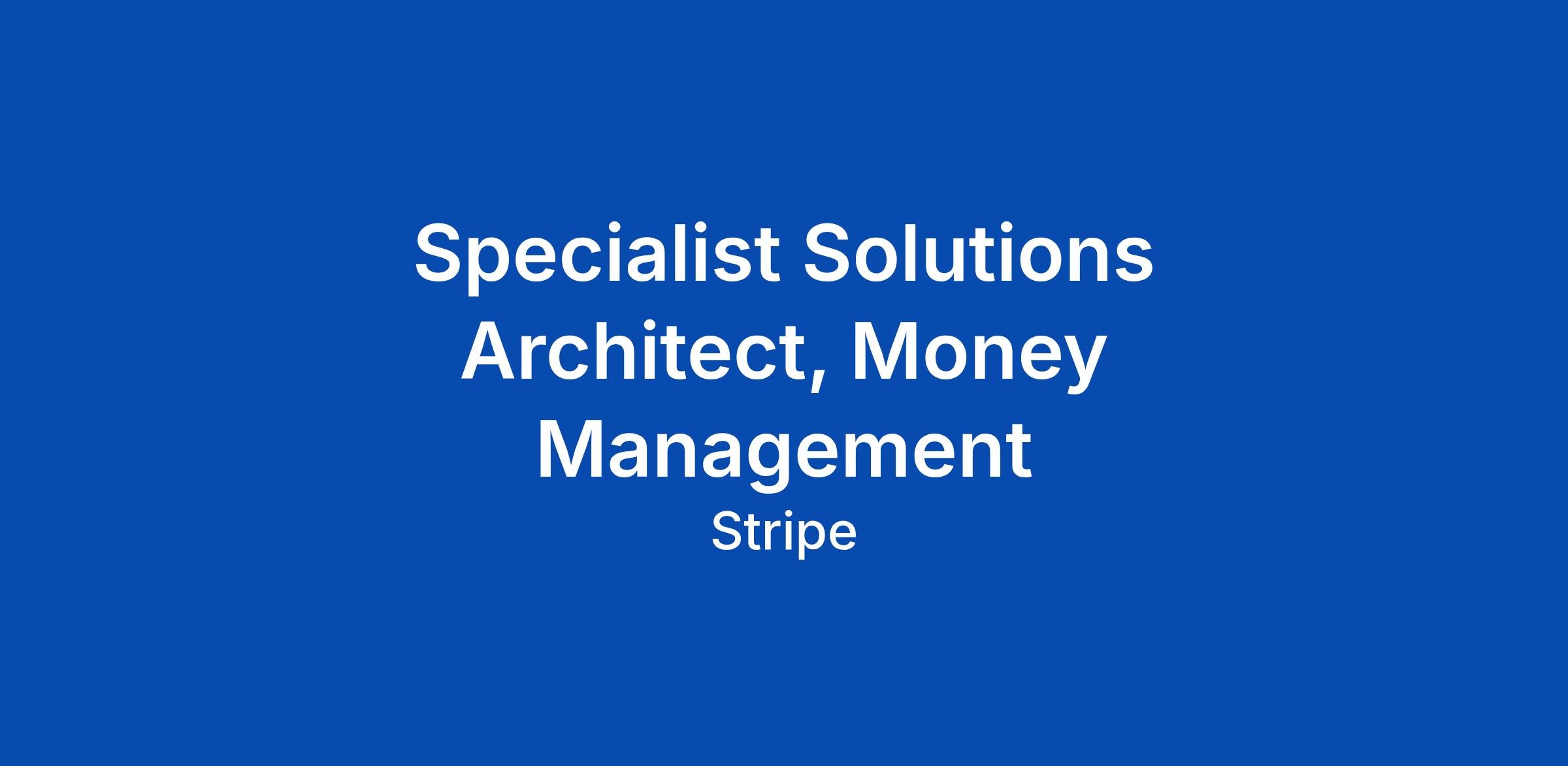 Specialist Solutions Architect, Money Management
