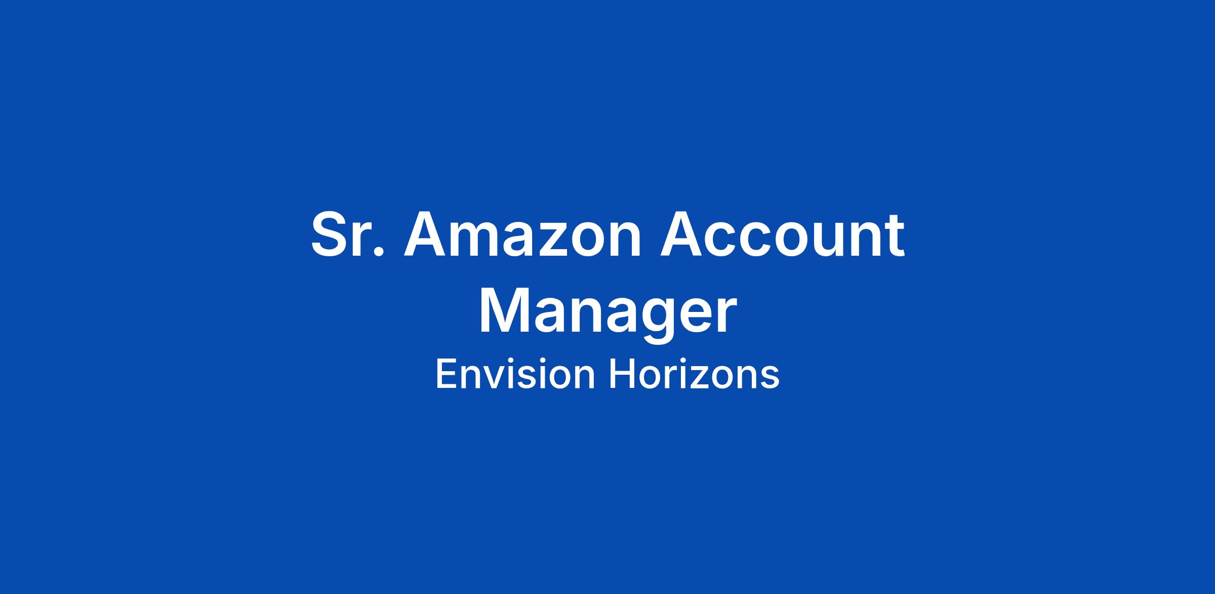 Envision Horizons is a global marketplace growth agency specializing in Amazon, Walmart, and other major retail media networks. Our team helps brands build awareness, capture market share, and drive profitability through data-driven strategy and execution. We believe high-performing teams are built on trust, curiosity, and the power of collective expertise. As a leading force in global eCommerce acceleration, our diverse, tech-driven professionals donβt just react to the industry; they shape it. By fusing ambitious thinking with compassion, we deliver exceptional client outcomes while making space for every individual to create, grow, and genuinely thrive. Each team member influences our evolution, enjoying flexibility and support unmatched by larger organizations. Here, your impact is real, your ideas matter, and your career trajectory is limitless. Role Overview Weβre searching for bold, strategic, and growth-oriented Sr. Amazon Account Managers. Youβll become a trusted advisor to our clients, architecting Amazon strategies that move the needle while steering the day-to-day success of their accounts. Backed by our proprietary myHorizons tech and Advanced Amazon Partner status, yo... Click Apply to read the full job description.