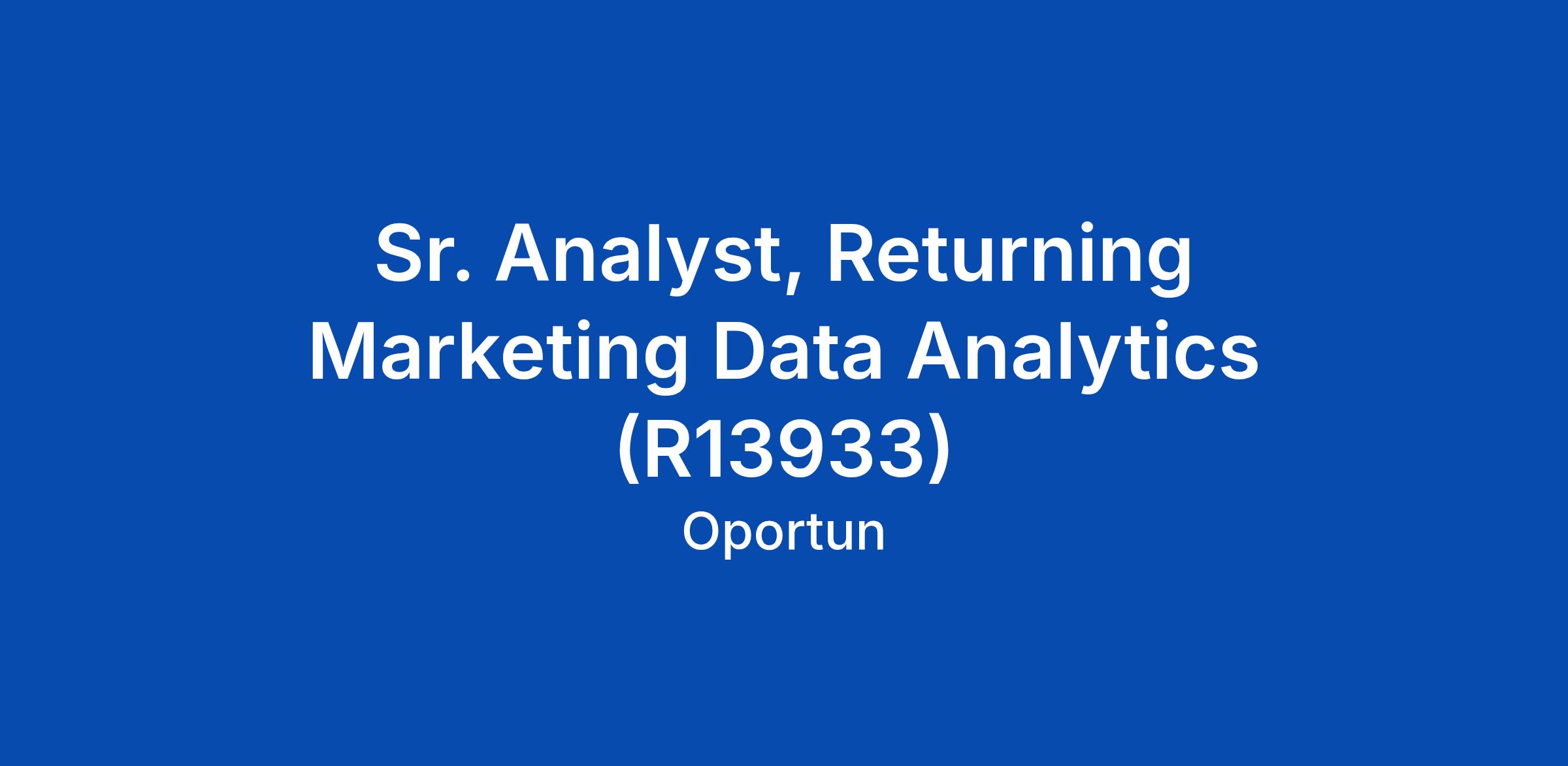 Sr. Analyst, Returning Marketing Data Analytics (R13933)