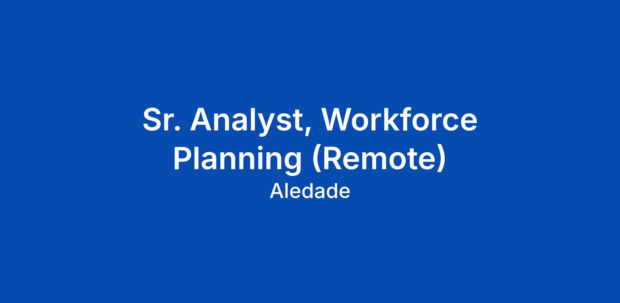 Sr. Analyst, Workforce Planning (Remote)