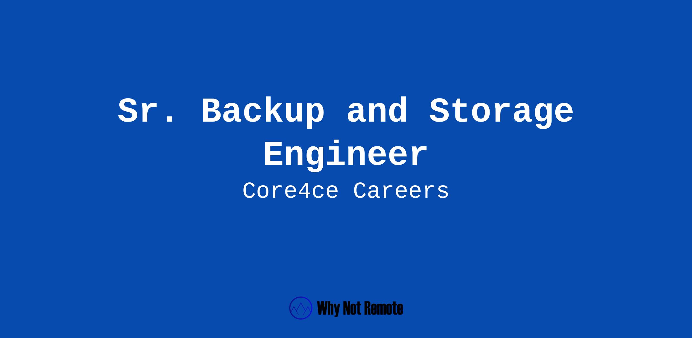 Core4ce is seeking a Senior Backup and Storage Engineer capable of providing advanced expertise in the deployment, administration, and optimization of storage and backup solutions supporting the Defense Health Agency (DHA). This role ensures end users and mission systems maintain reliable access to data and are protected against data loss through resilient, scalable storage and enterprise backup systems.