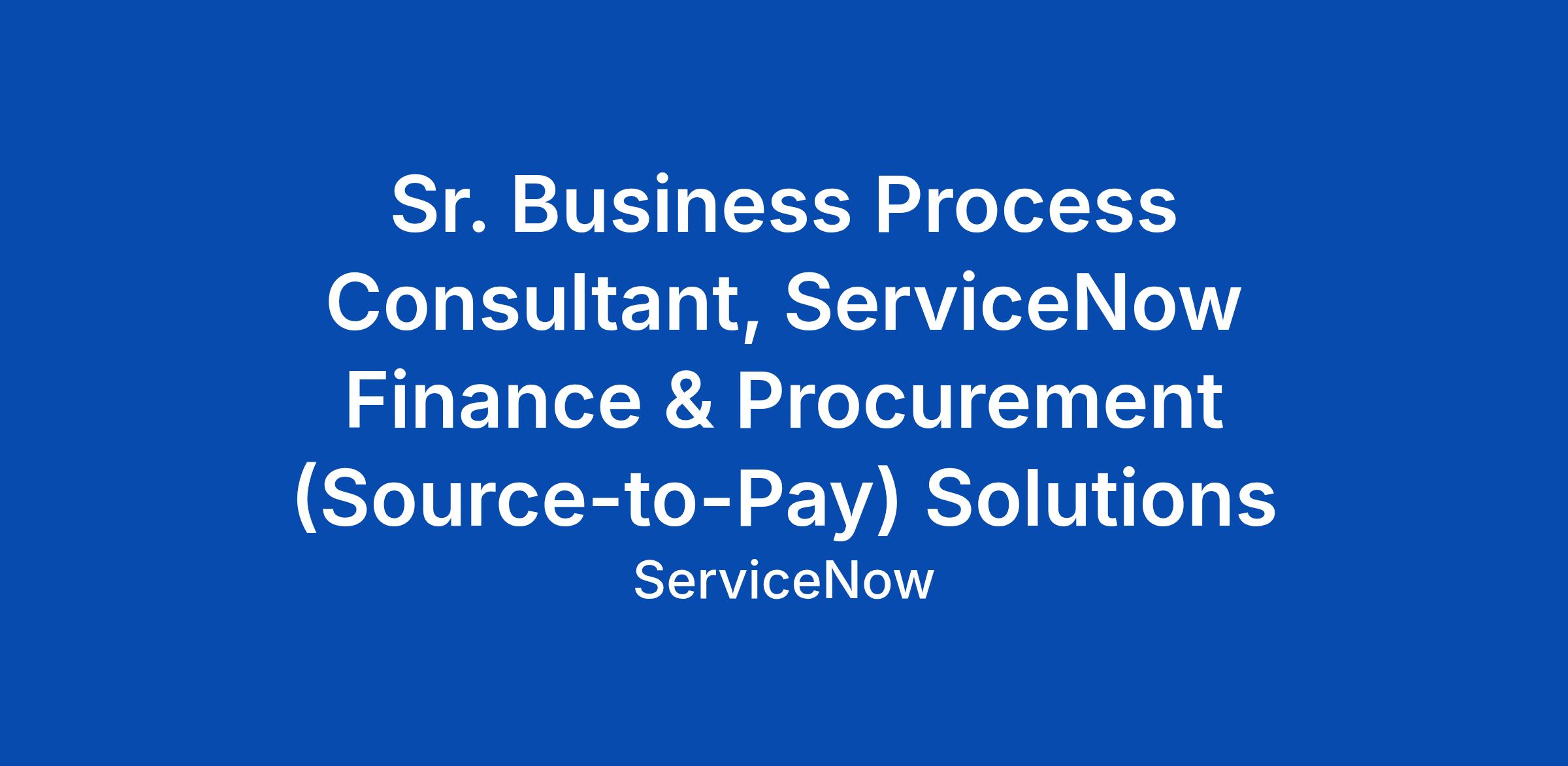 Sr. Business Process Consultant, ServiceNow Finance & Procurement (Source-to-Pay) Solutions