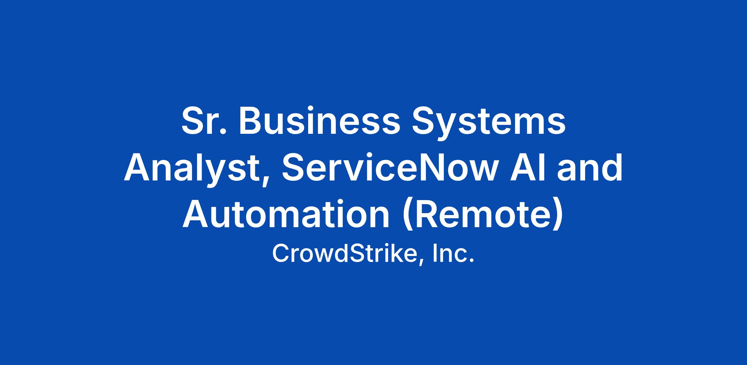 CrowdStrike is seeking a Senior Business Systems Analyst – ServiceNow to join its IT Service Management Office. In this role, you will partner with business stakeholders, architects, and ServiceNow developers to align platform solutions with business outcomes.
