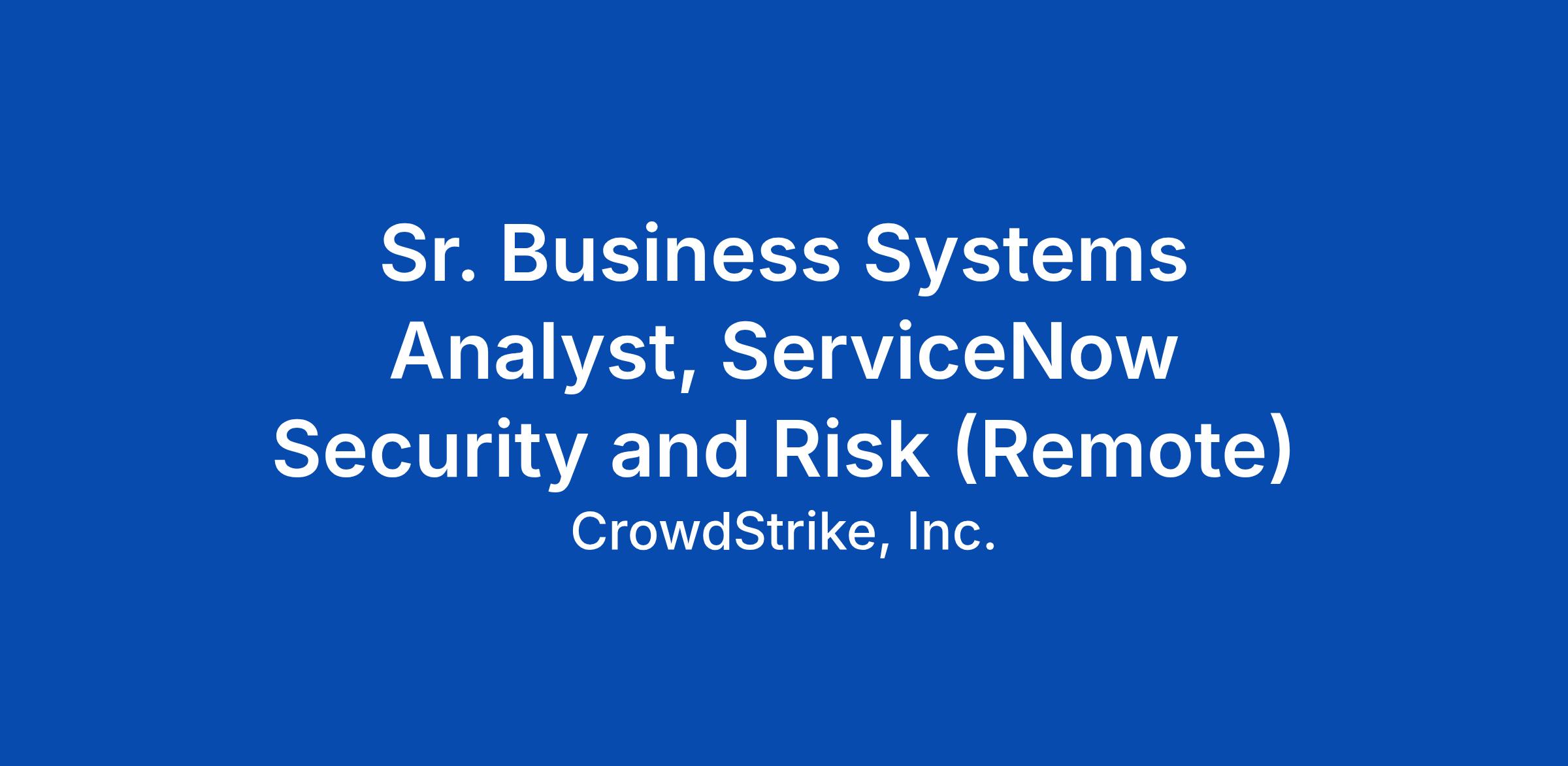 CrowdStrike is seeking a Senior Business Systems Analyst – ServiceNow, to join its IT Service Management Office, with a focus on security and risk capabilities across the ServiceNow platform. In this role, you will partner with business stakeholders, security teams, architects, and ServiceNow developers to align solutions with business, risk, and compliance objectives.