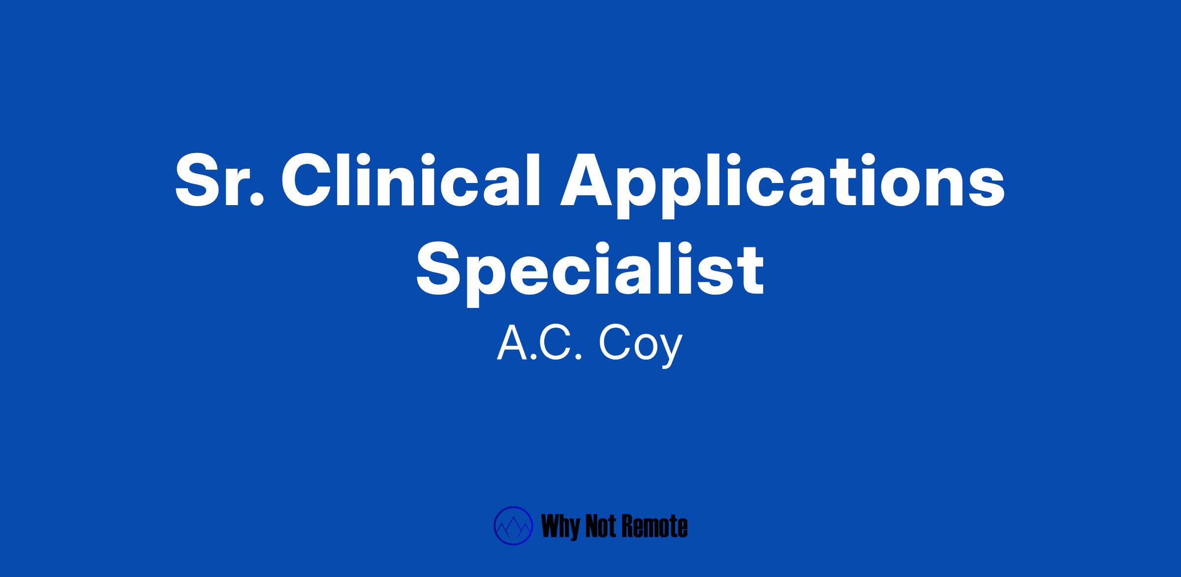 The A.C.Coy company has an immediate opening for a Senior Clinical Applications Specialist that will be responsible for designing, implementing, supporting and maintaining application and technical integrations to meet the needs of the organization. Consults on complex application and data integration issues. Demonstrates elevated computer operational skills. Should be able to perform difficult application diagnostics and troubleshooting. Must be able to mentor more junior level staff on department procedure and application support and/or implementation procedures. Supports elevated computer system capabilities by studying technical applications and hardware; following support recommendations based on hardware integration availability from vendor and knowledge of enterprise patient care workflows. Ensures the performance, resources, and reliability of hardware and software integrations to meet department needs. May acquire, install, or upgrade computer components and software; provide routine automation; troubleshoot; train and/or supervise staff; or offer technical support for projects for assigned applications. May lead small support project efforts in a Project Manager capacity. Maintains a level of cybersecurity knowledge sufficient to securely accomplish their job duties. Imaging analyst that understands both radiology and cardiology workflows. A PACS Admin will not work for this position. Need to have experience with Fuji PACS, Powerscribe, Powershare, Siemens Cardiology, Merge Cardio and Merge Hemo.