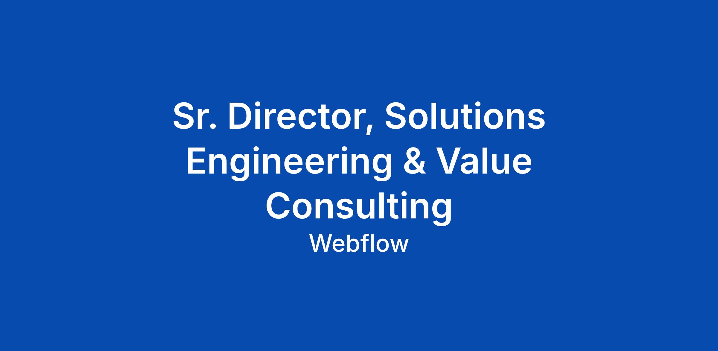Sr. Director, Solutions Engineering & Value Consulting