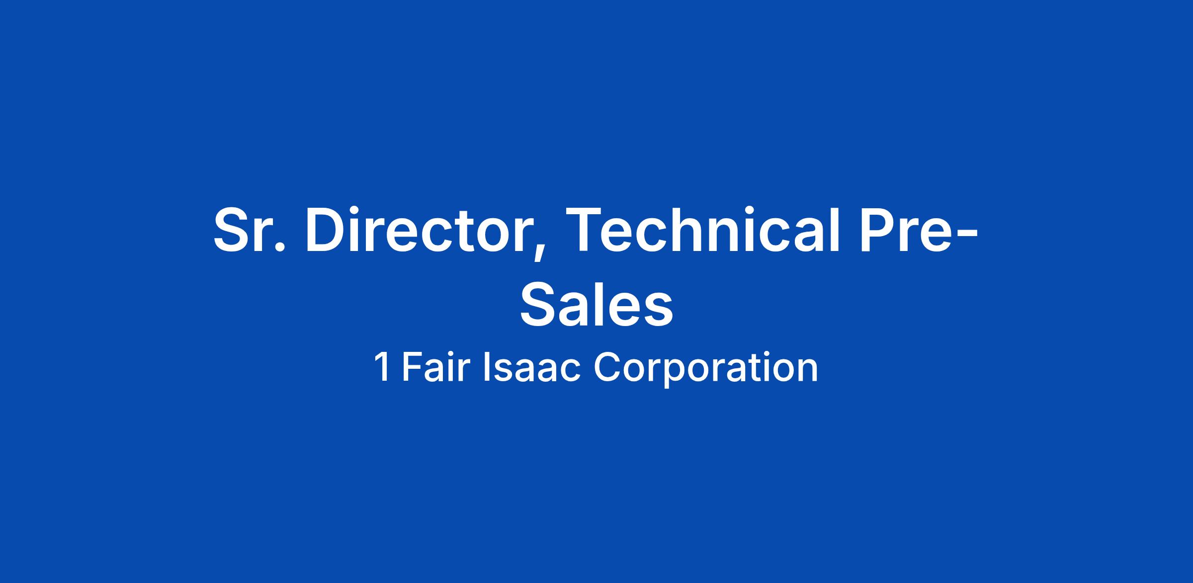 "Are you driven by challenges such as improving business performance, accelerating revenue growth, and enabling organizations to make smarter, faster decisions? At FICO, we empower organizations across industries with world-class analytics solutions that enhance pricing models, streamline decision-making, manage risk, and combat fraud. As a Sr. Director, Technical Pre-Sales, you'll lead a team of consultants at the forefront of helping clients solve their most complex business challenges. Your role is to develop and inspire a high-performing pre-sales organization, bridging the gap between cutting-edge technology and the specific needs of our clients — while partnering closely with sales leadership to ensure rigorous, consistent deal execution from first discovery through close." - Hiring Manager