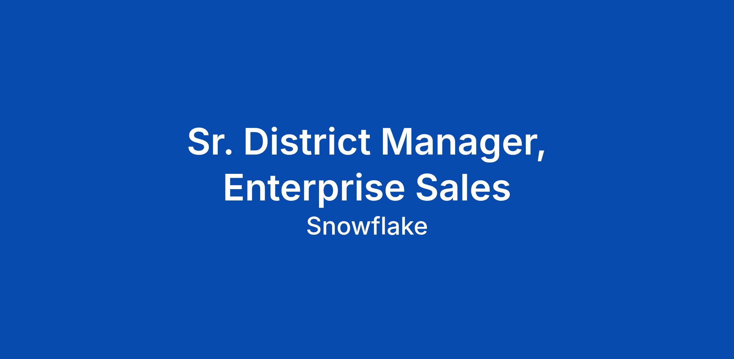 At Snowflake, we are powering the era of the agentic enterprise. To usher in this new era, we seek AI-native thinkers across every function who are energized by the opportunity to reinvent how they work. You donβt just use tools; you possess an innate curiosity, treating AI as a high-trust collaborator that is core to how you solve problems and accelerate your impact. We look for low-ego individuals who thrive in dynamic and fast-moving environments and move with an experimental mindset β who rapidly test emerging capabilities to discover simpler, more powerful ways to deliver results. At Snowflake, your role isn't just to execute a function, but to help redefine the future of how work gets done. Observe by Snowflake is redefining how modern data-driven teams understand and operate their systems. As a fast-growing business, we are expanding our sales leadership team to accelerate both new customer acquisition and expansion within our existing customer base. We are deeply committed to our employees, customers, and culture, and weβre looking for leaders who bring a growth mindset, operational rigor, and a passion for building high-performing teams. We are seeking a Sr. District Manag... Click Apply to read the full job description.