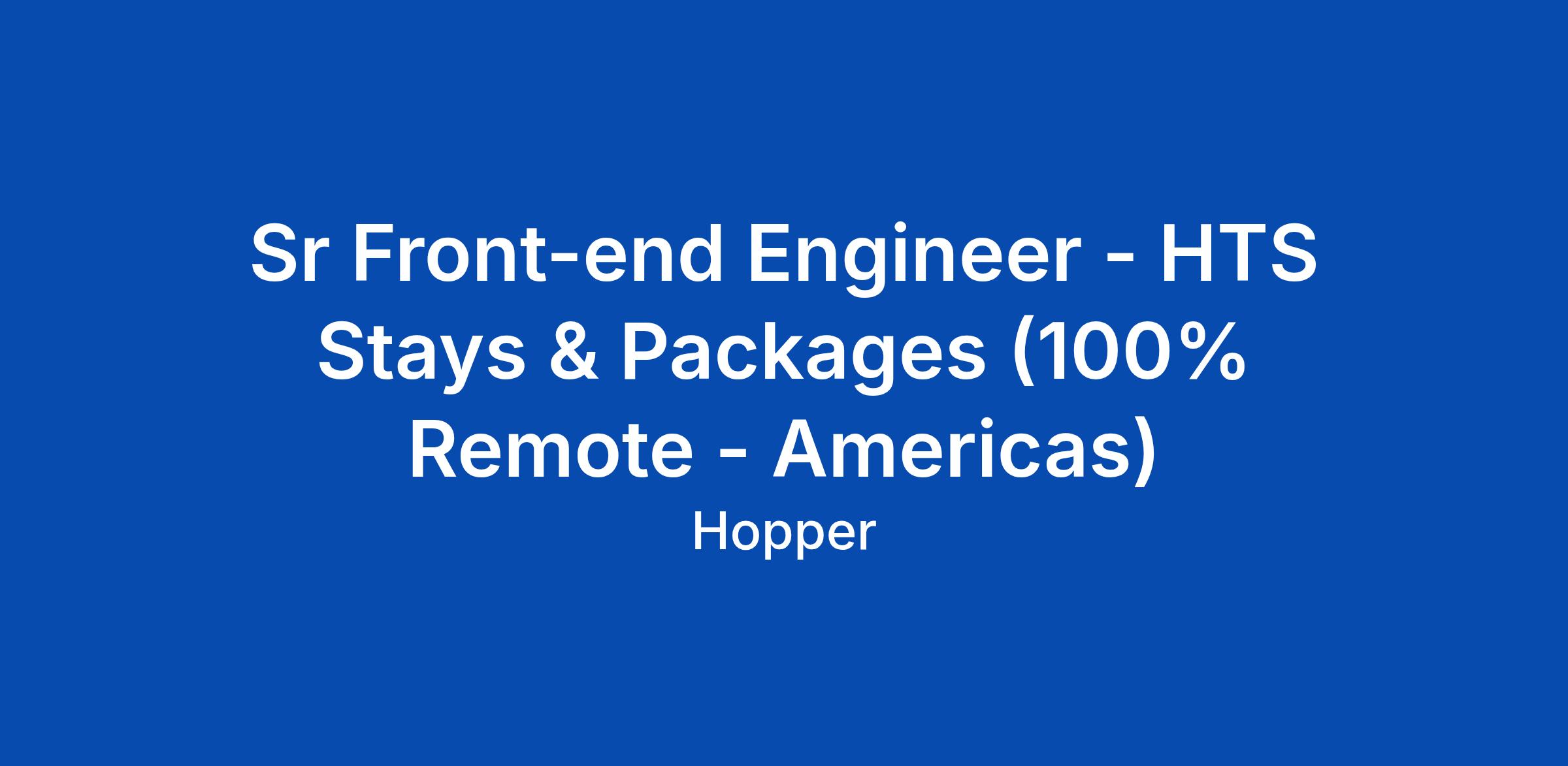 Sr Front-end Engineer - HTS Stays & Packages (100% Remote - Americas)