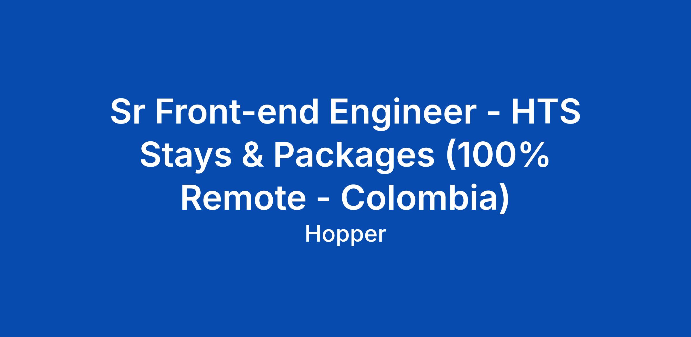 Sr Front-end Engineer - HTS Stays & Packages (100% Remote - Colombia)