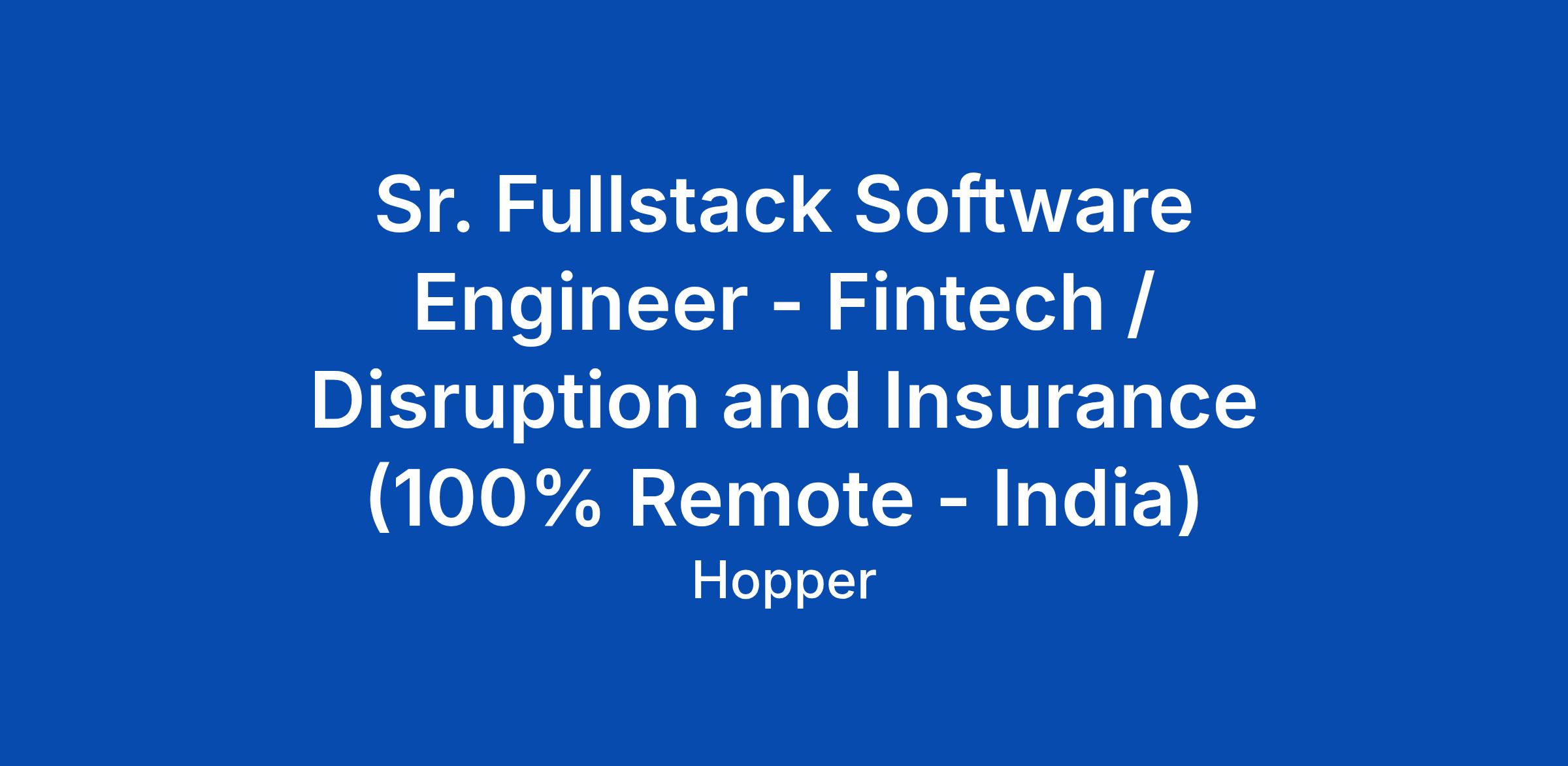 Sr. Fullstack Software Engineer - Fintech / Disruption and Insurance (100% Remote - India)