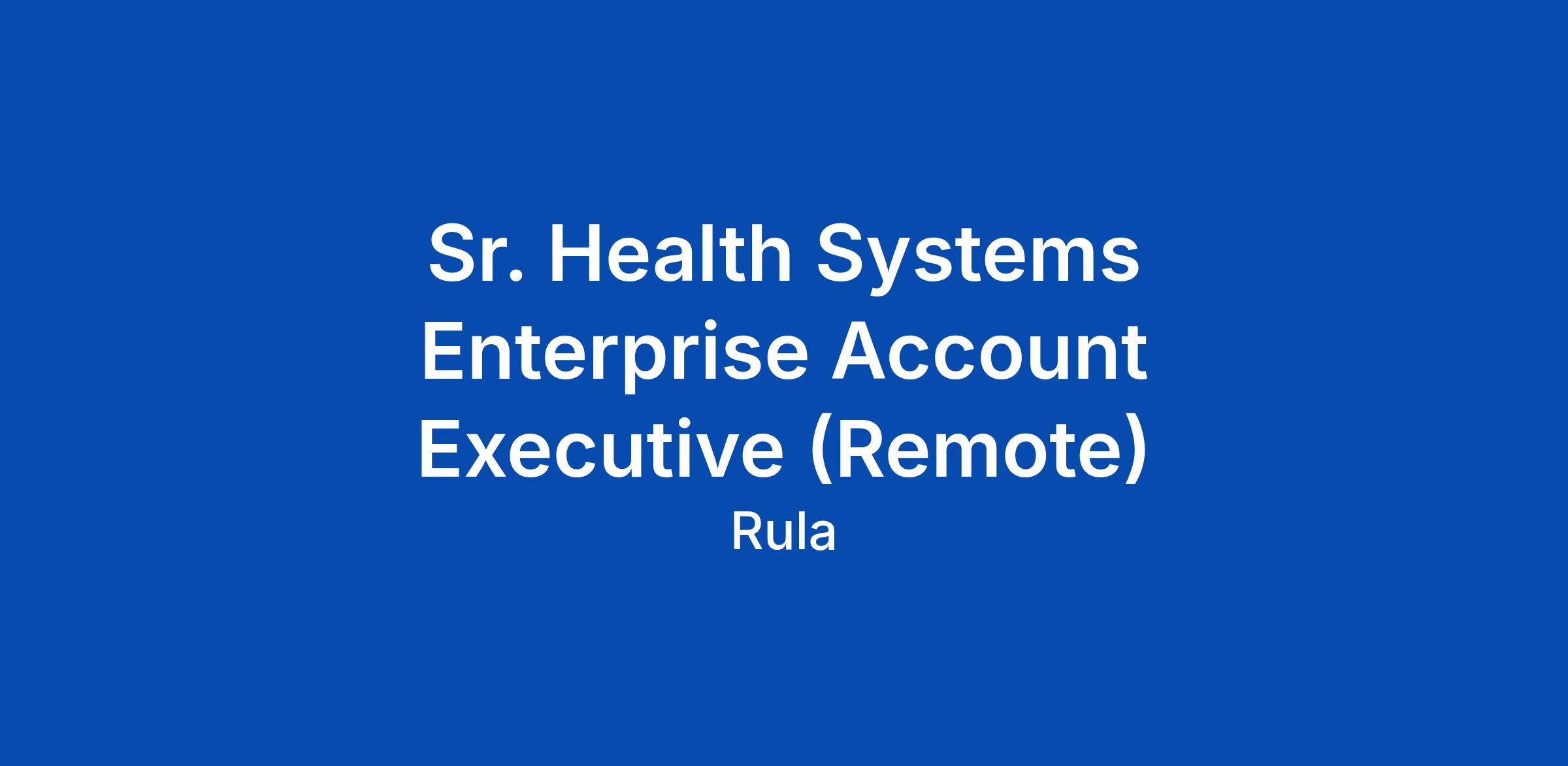 Sr. Health Systems Enterprise Account Executive (Remote)