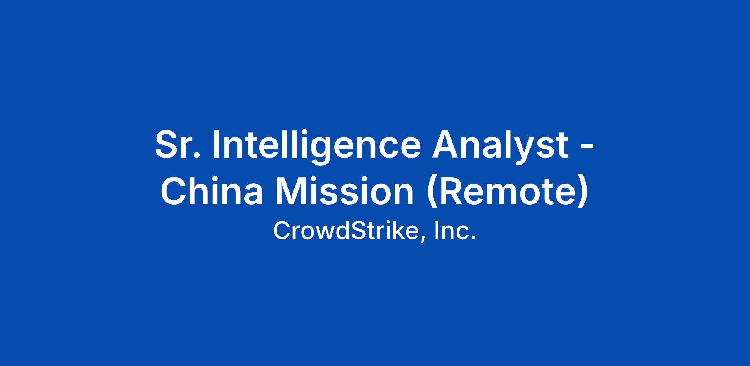 CrowdStrike Intelligence is seeking a Senior Intelligence Analyst for its Global Threat Analysis Cell (GTAC) to track and analyze targeted intrusion activity associated with People's Republic of China (PRC)-nexus adversaries. The Analyst will monitor PRC-nexus cyber operations, identify emerging trends and threats, investigate suspected China-related adversary activity, and produce strategic and tactical intelligence assessments and products that directly inform CrowdStrike customers.