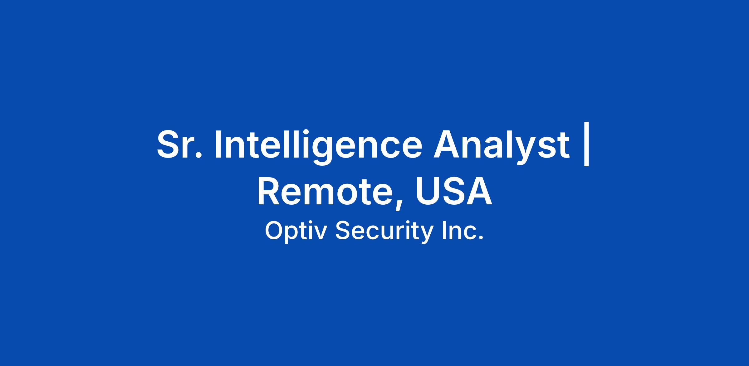 - Travel as needed (up to 15–20%) for client engagements, conferences, and intelligence‑sharing events.