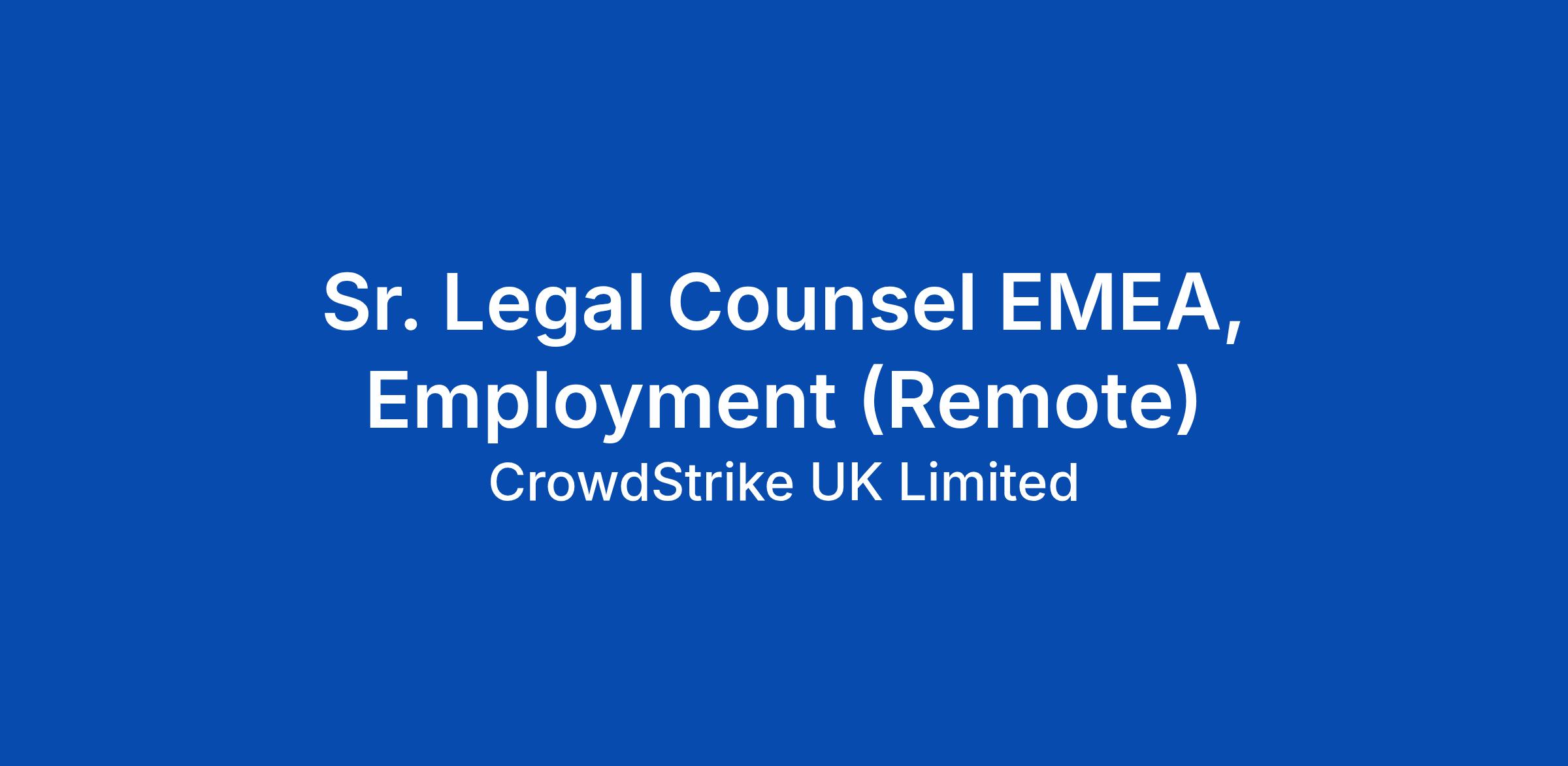 We are seeking a high-calibre Senior Counsel, Employment to join our scaling Legal Department. The role is remote and the role-holder will be based in either UK, France, Spain, Israel or Ireland. In this strategic role, you will counsel CrowdStrike’s business leaders and the HR team on employment matters across 21 EMEA jurisdictions. The role involves all aspects of the employer-employee relationship You will help resolve disputes and have the opportunity to manage outside counsel around the world. You will collaborate with stakeholders to lead cross-functional initiatives and manage interesting and complex projects from inception to implementation. The position will report to the Assistant General Counsel EMEA (Employment).