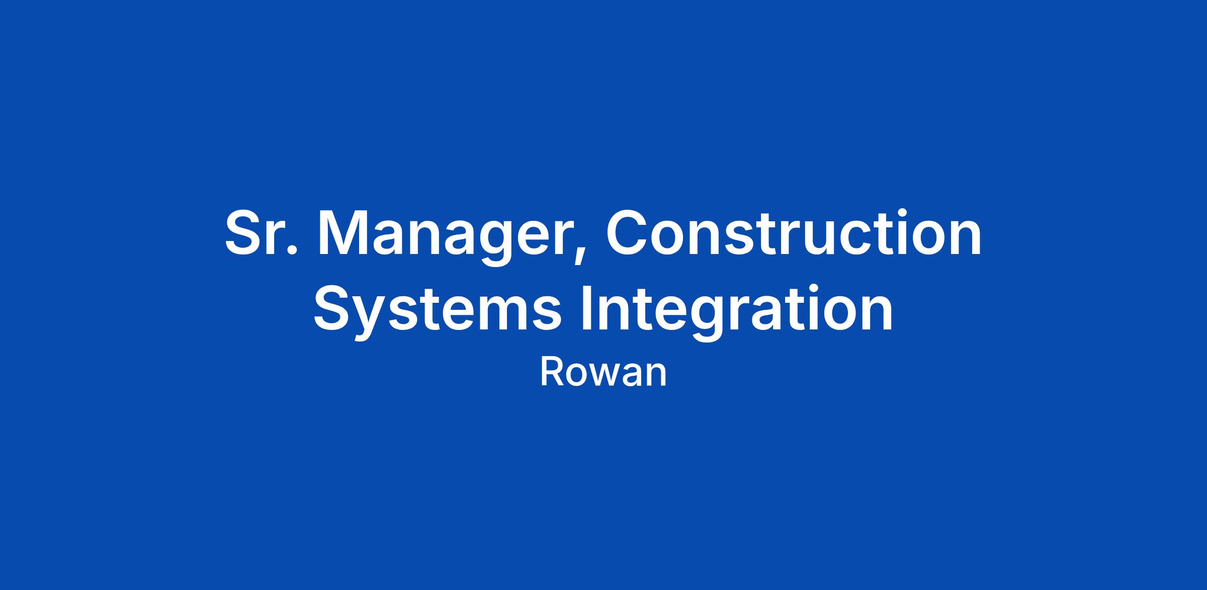 Sr. Manager, Construction Systems Integration