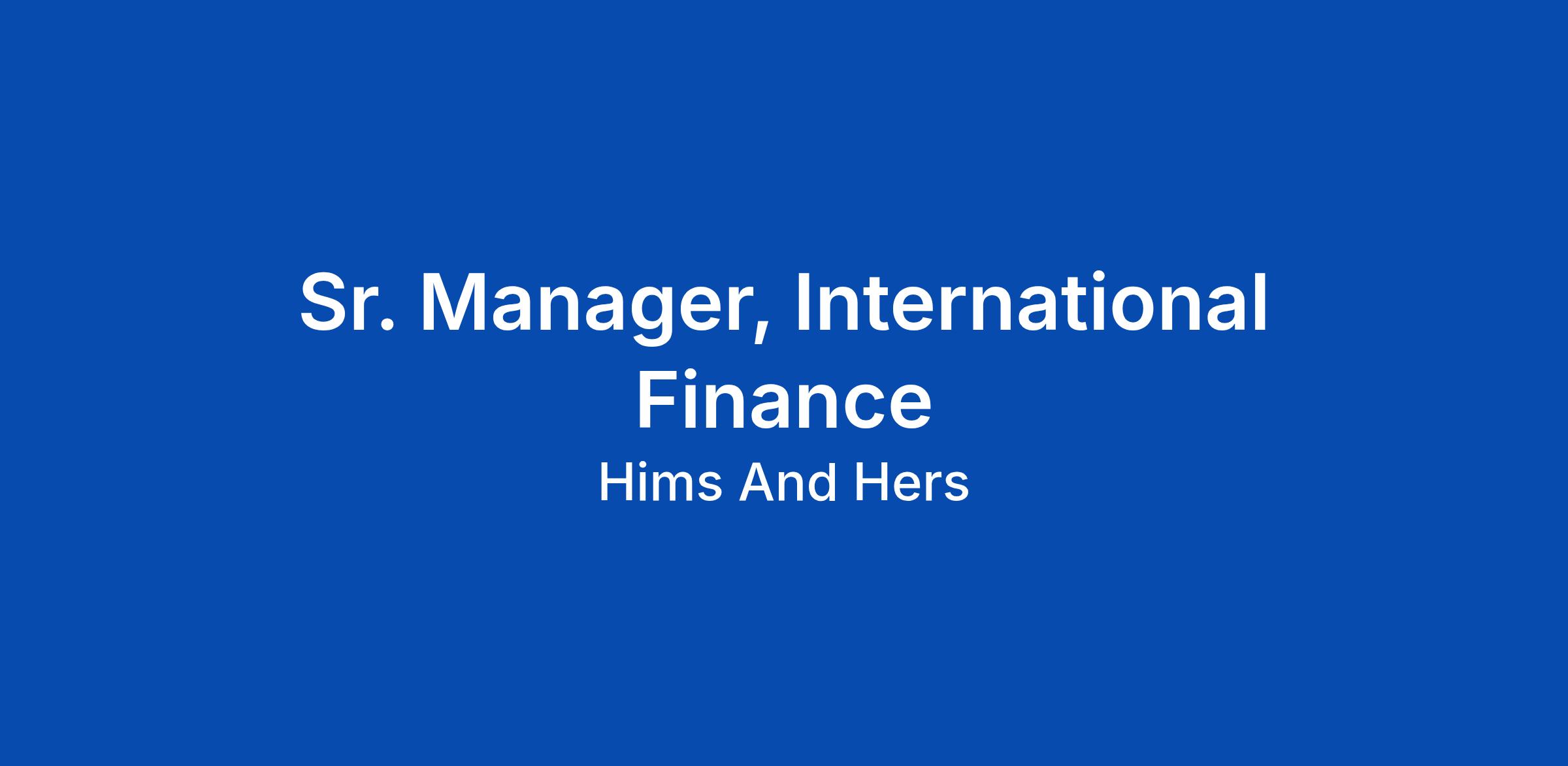 HIMS & HERS IS LOOKING TO RECRUIT A FINANCE MANAGER, INTERNATIONAL, TO JOIN OUR STRATEGIC FINANCE TEAM. IN THIS ROLE, YOU WILL REPORT TO THE VP OF CATEGORY FINANCE AND BE FULLY REMOTE-BASED. AS A MANAGER, YOU WILL OWN AND BE RESPONSIBLE FOR THE DAY-TO-DAY FINANCIAL PLANNING, STRATEGIC FINANCE, BUDGETING, METRICS, SYSTEMS, DECISION SUPPORT, AND ANALYSIS ACROSS OUR INTERNATIONAL BUSINESSES.