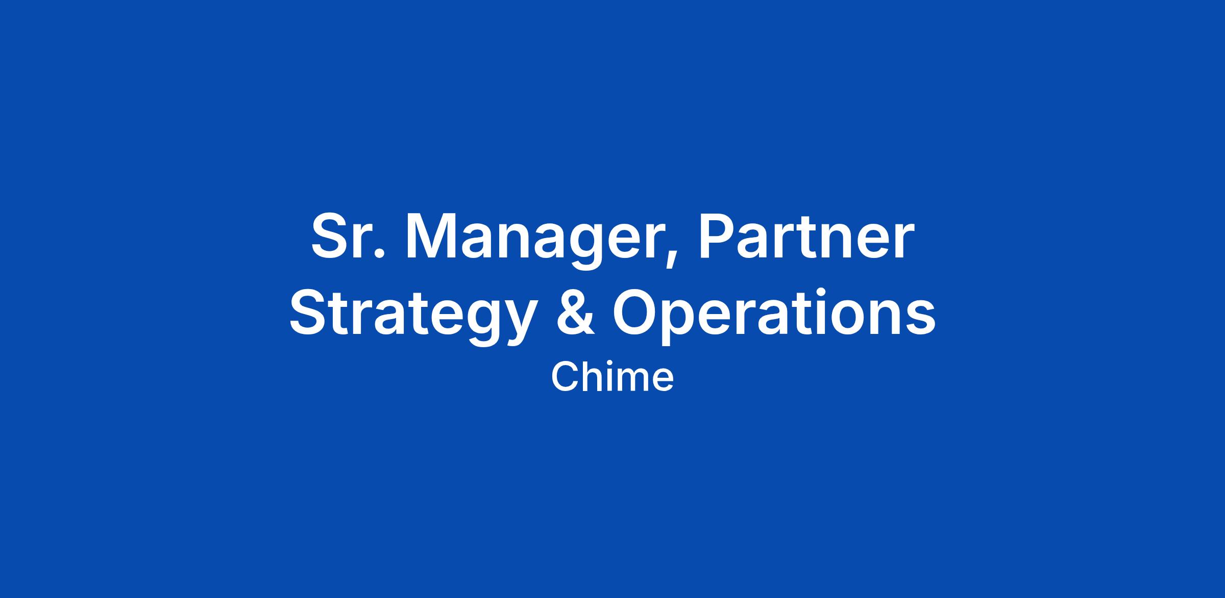 Sr. Manager, Partner Strategy & Operations