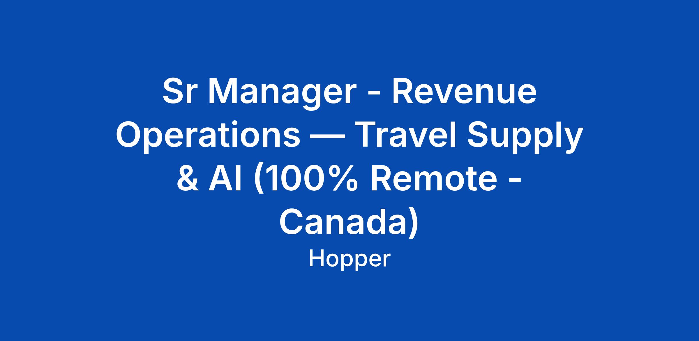 Sr Manager - Revenue Operations β Travel Supply & AI (100% Remote - Canada)