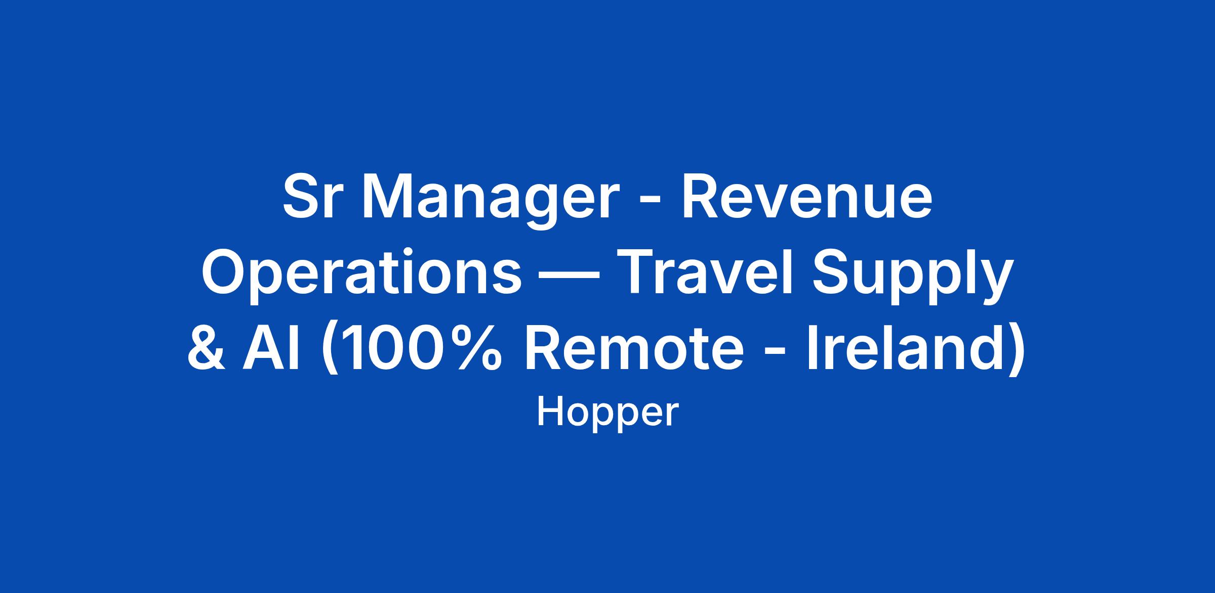 Sr Manager - Revenue Operations β Travel Supply & AI (100% Remote - Ireland)