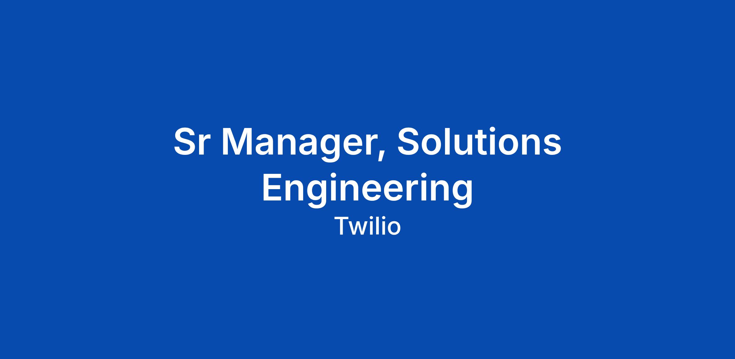 Sr Manager, Solutions Engineering