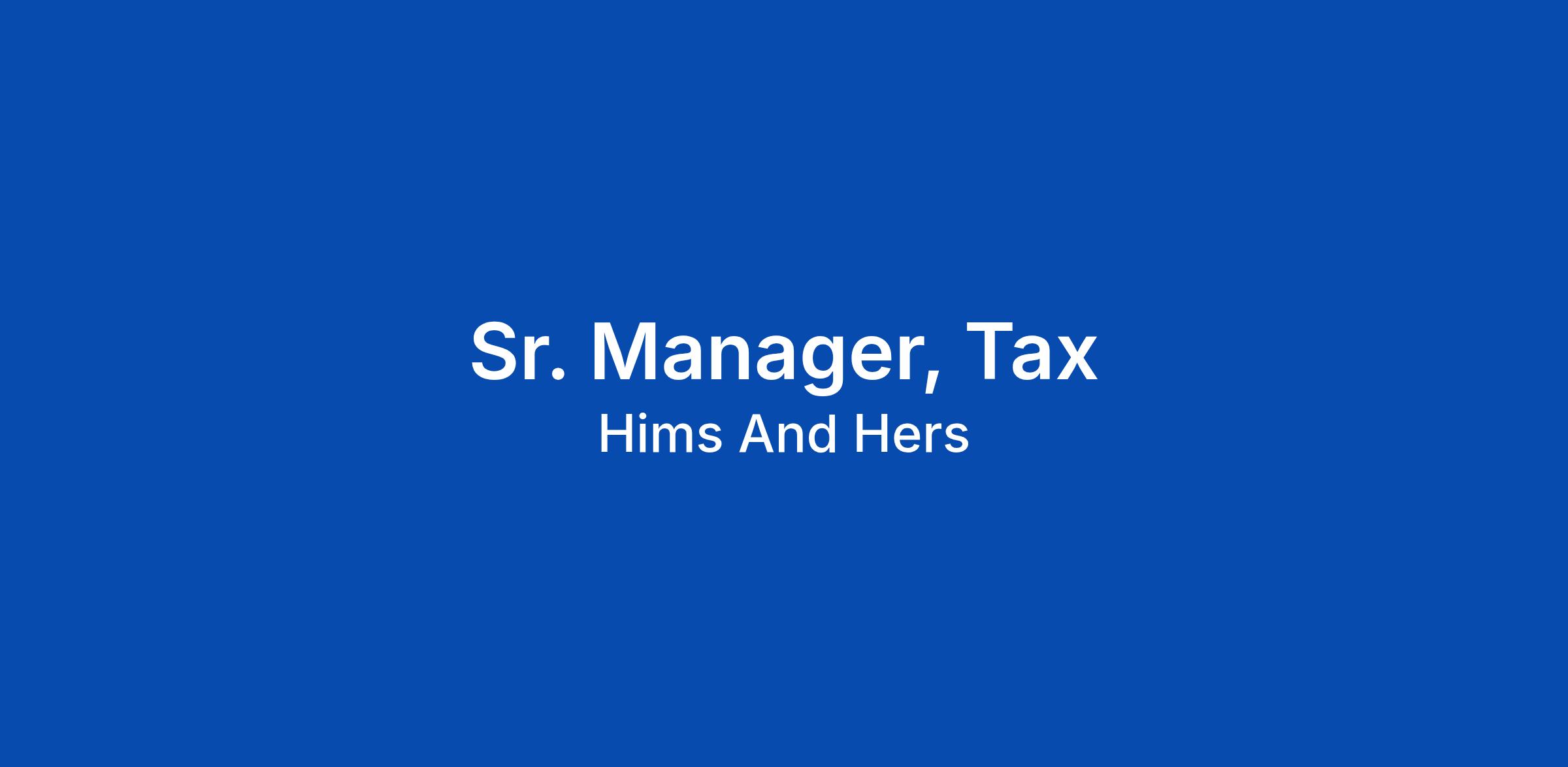 Sr. Manager, Tax