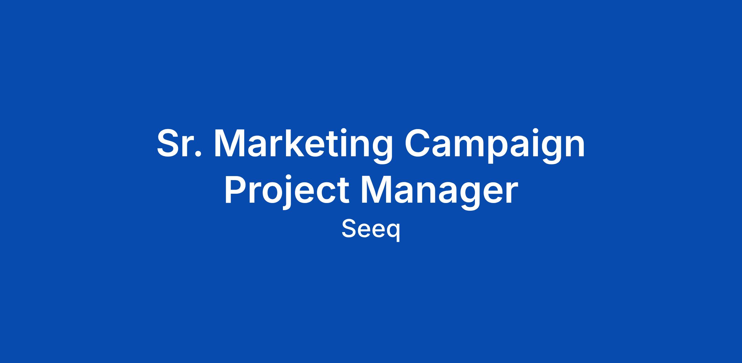 Weβre hiring a Senior Marketing Campaign Project Manager to lead the end-to-end project management of our most important integrated marketing and Account-Based Experience (ABX) campaigns and to set the standard for how campaign work gets done across the Demand Generation organization.