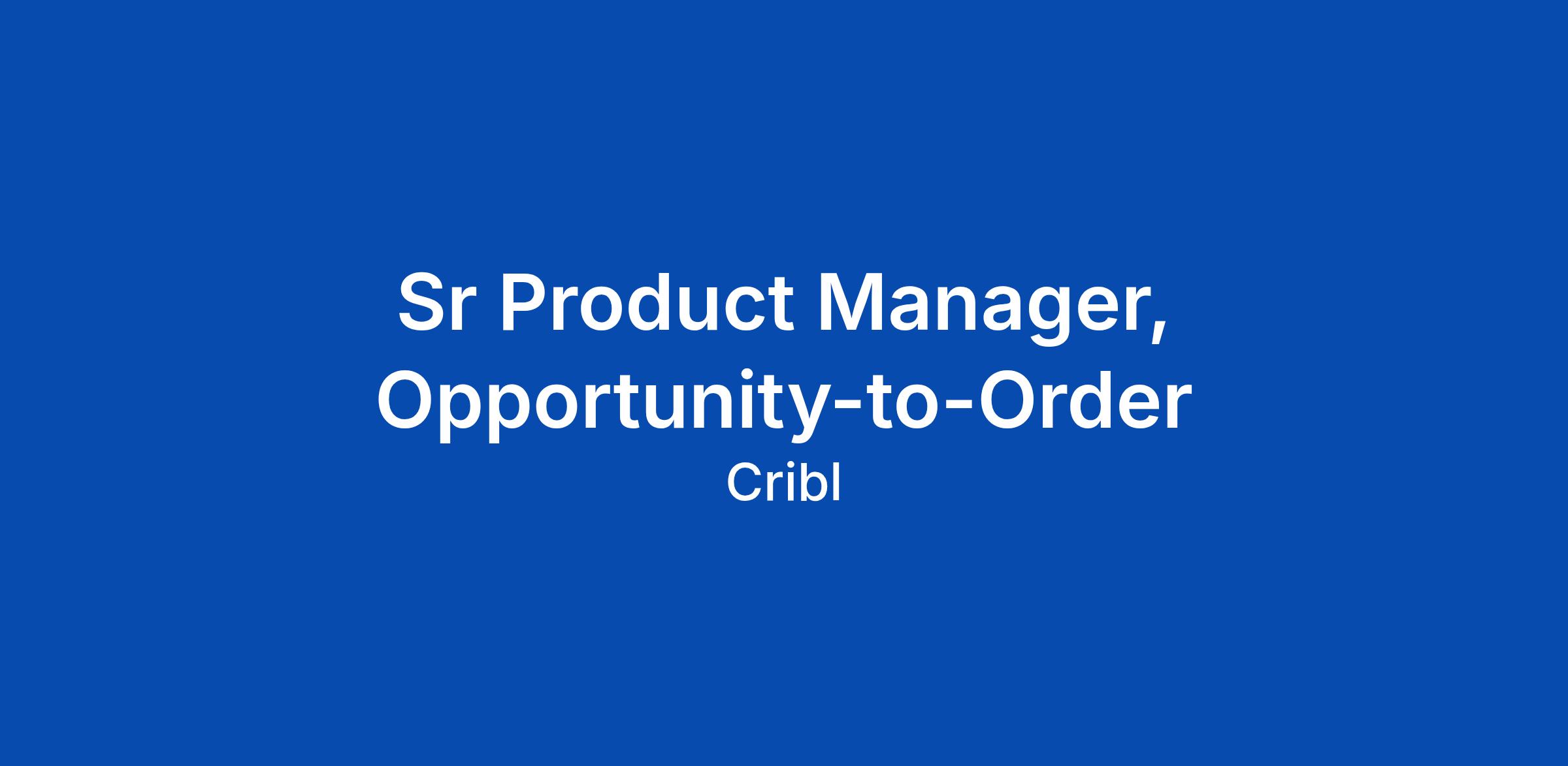Cribl's growth depends on how reliably we can turn intent into revenue while keeping our systems, data, and teams in sync. The Sr. Product Manager, Opportunity-to-Order (O2O) Systems will partner closely with business stakeholders to shape the roadmap for the systems, workflows, and data that g... Click Apply to read the full job description.