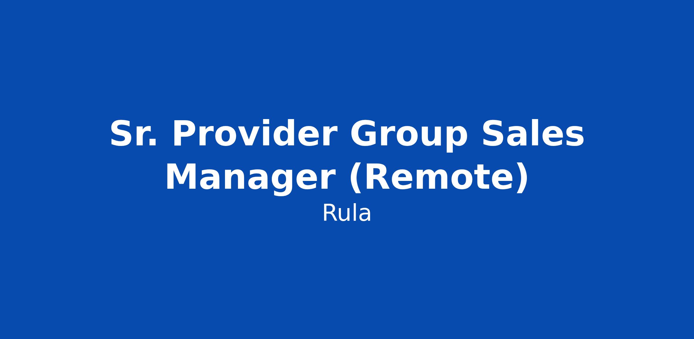 Sr. Provider Group Sales Manager (Remote)