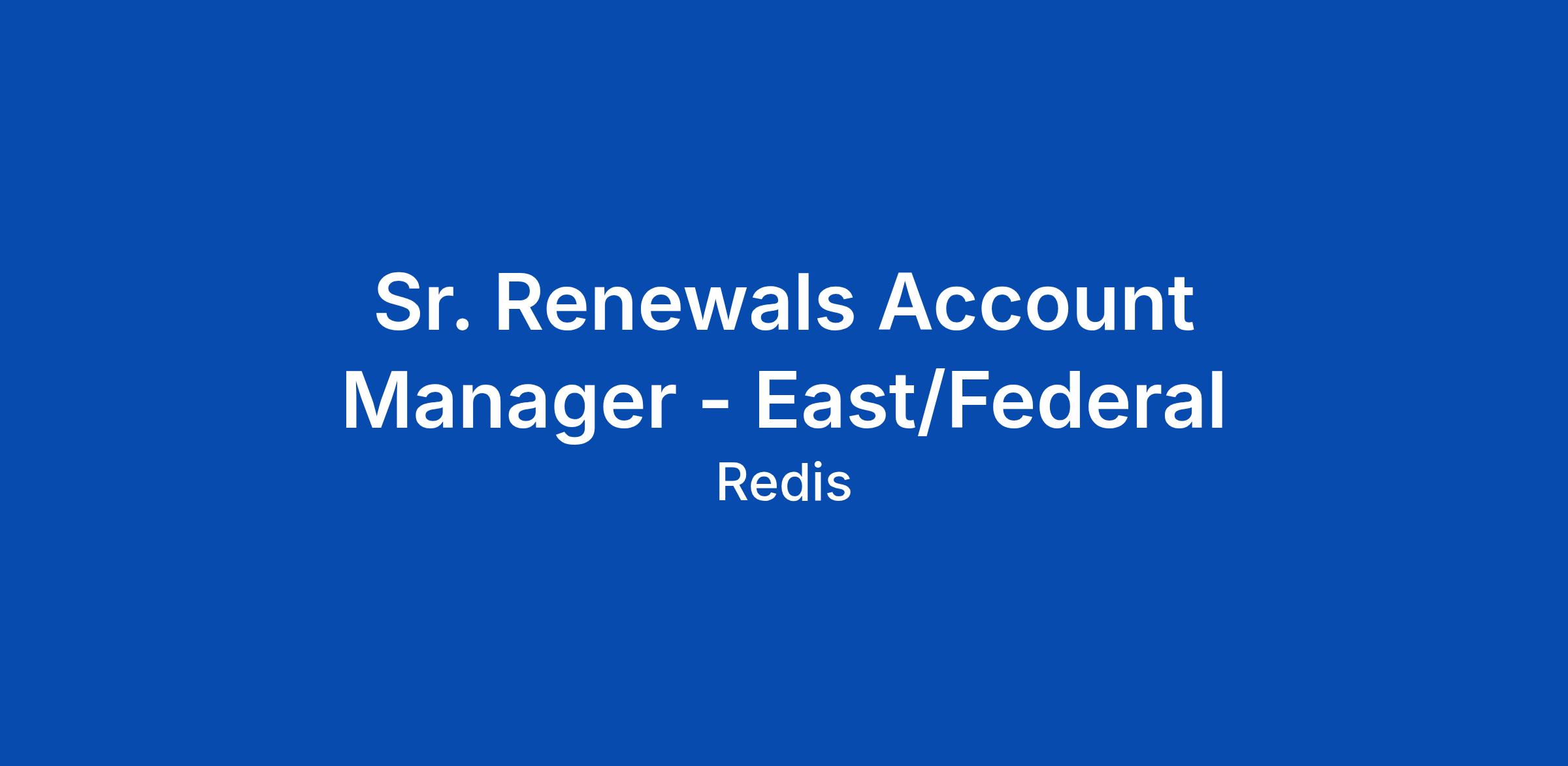 Who we are We're Redis. We built the product that runs the fast apps our world runs on. (If you checked the weather, used your credit card, or looked at your flight status online today, you’re welcome.) At Redis, you’ll work with the fastest, simplest technology in the business—whether you’re building it, telling its story, or selling it to our 10,000+ worldwide customers. We’re creating a faster world with simpler experiences. You in? Key Responsibilities Renewal Management - Lead the renewal process for assigned accounts with Federal and in the EasternUnited States regions to improve renewal rates. - Engage with customers 180 days before renewal deadlines to secure timely renewals & multi-year contracts. - Prepare accurate renewal quotes and contracts in line with company policies. - Ability to independently run a full renewals process with efficiency and urgency Customer Engagement - Build strong relationships with customers to understand their needs and challenges. - Present renewal information independently and confidently - Clearly communicate complex renewal contracts Negotiation and Objection Handling - Address customer objections related to renewals. - Negotiate contract t... Click Apply to read the full job description.