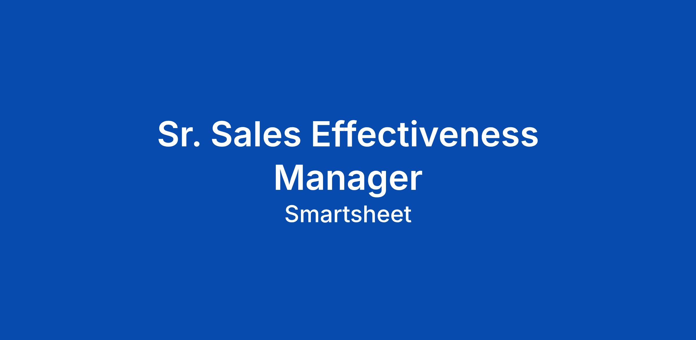 We're looking for a Senior Sales Effectiveness Manager to drive the adoption and execution of Smartsheet's value selling methodology across our global sales organization. You'll design training experiences that translate methodology into measurable behavior change, build reinforcement systems that ensure lasting adoption, and use data to continuously optimize how our Account Executives apply our framework in live deals. This is a strategic execution role — you'll own the "how" of enablement delivery while partnering with Sales leadership to ensure programs ... Click Apply to read the full job description.
