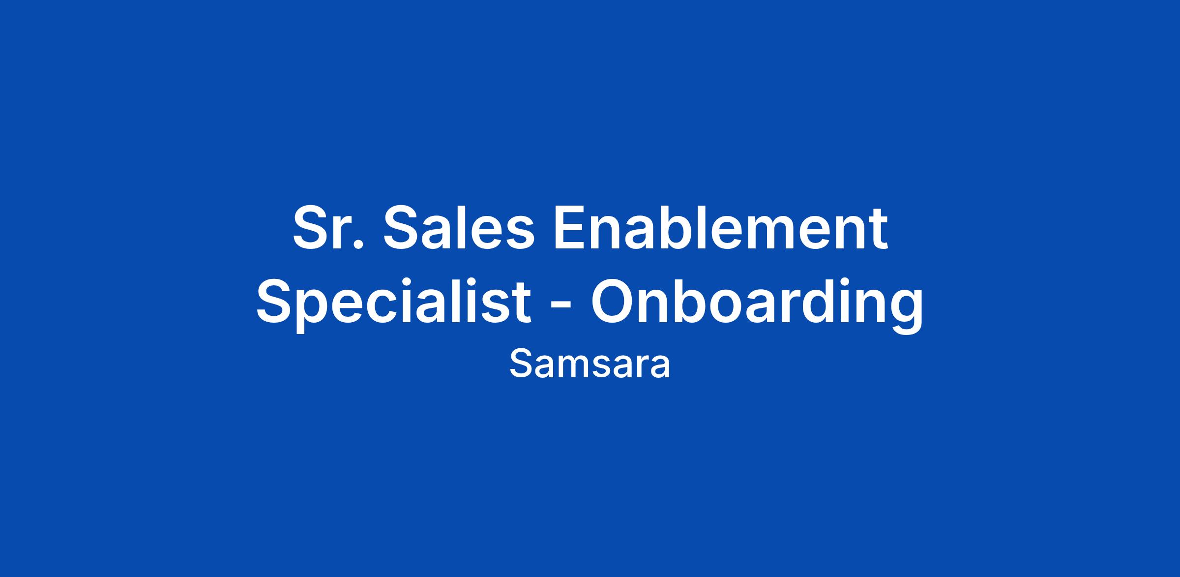 Sr. Sales Enablement Specialist - Onboarding