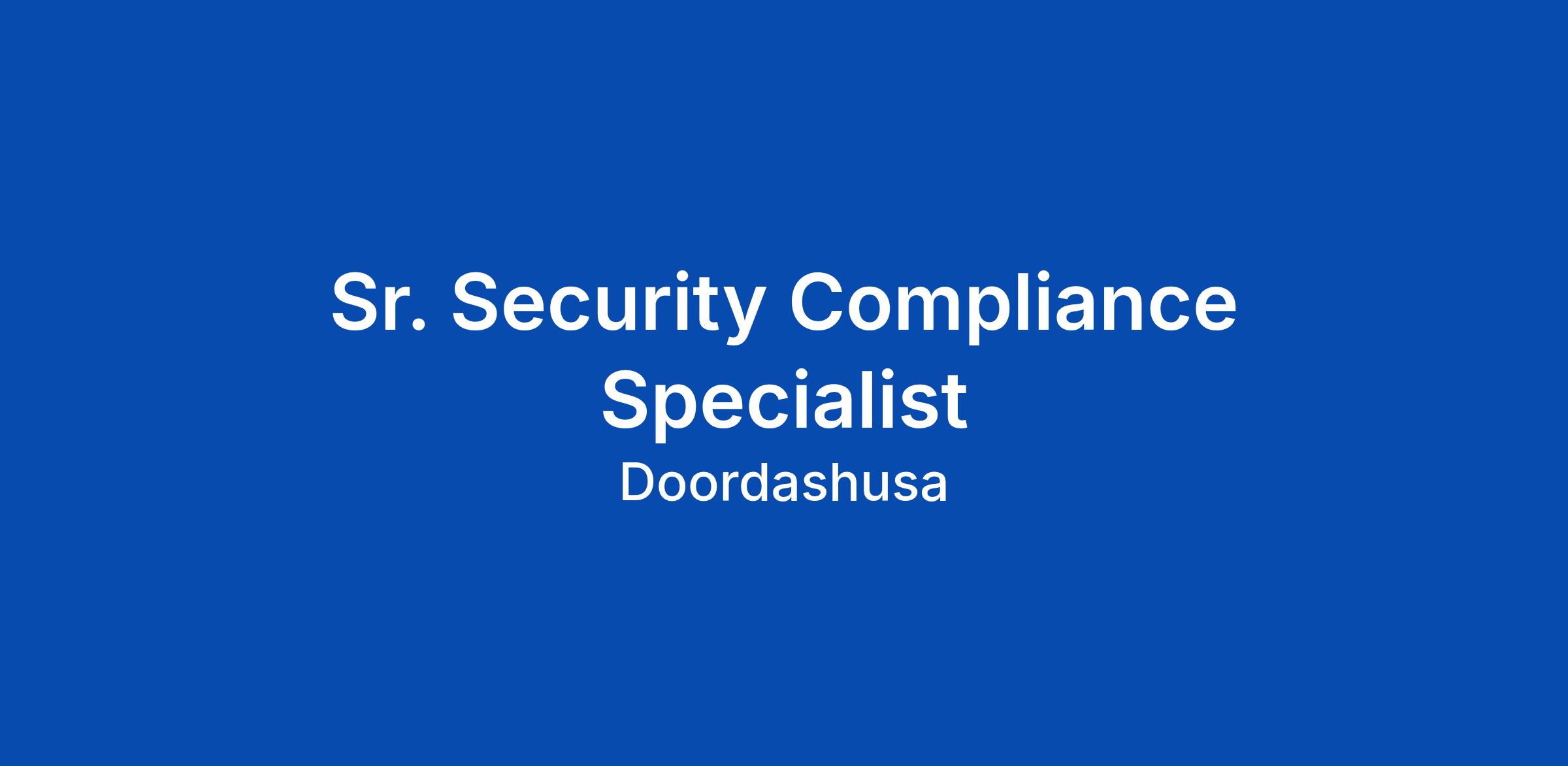 Weβre seeking a highly motivated and experienced Sr. Security Compliance Specialist to play a key role in scaling and maturing DoorDashβs global compliance program. Reporting to the Security Compliance Manager, ... Click Apply to read the full job description.