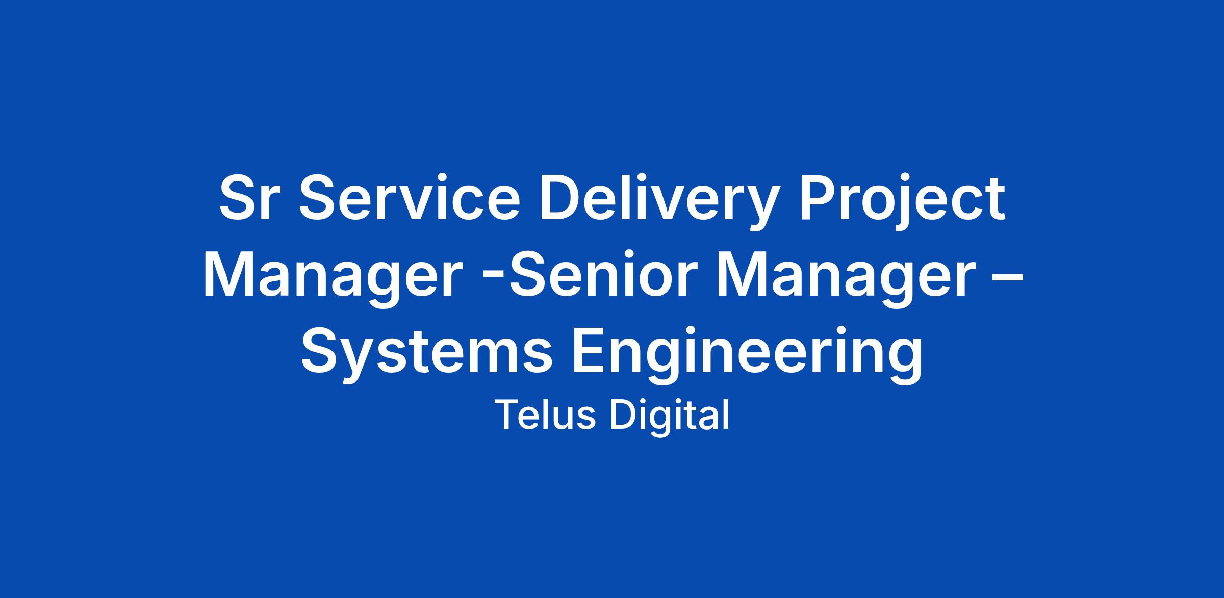 Sr Service Delivery Project Manager -Senior Manager – Systems Engineering