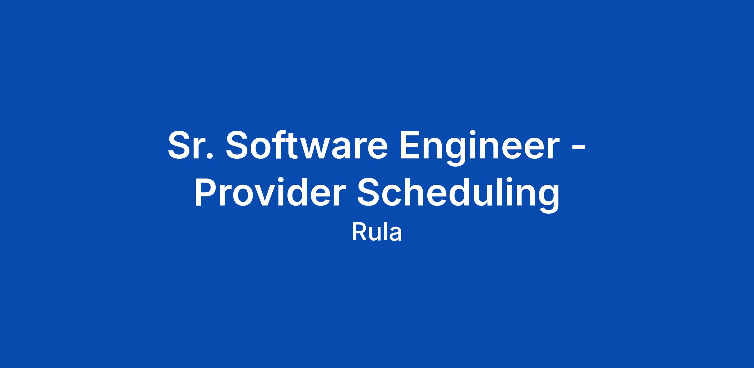 Sr. Software Engineer - Provider Scheduling