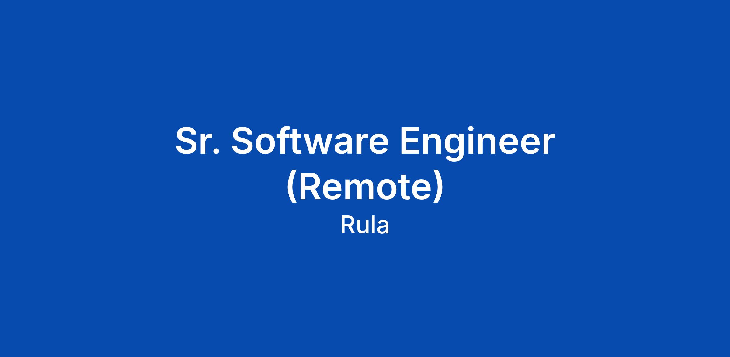 We believe that mental health is just as important as physical health. We recognize that mental health issues can be complex and multifaceted, and we are dedicated to treating the whole person, not just the symptoms. We aim to create a world where mental health is no longer stigmatized or marginalized, but rather is embraced as an integral part of one's overall well-being. We believe that by providing quality care that is both evidence-based and compassionate, we can empower individuals to take charge of their mental health and achieve their full potential. We are passionate about making a positive impact on the lives of those struggling with mental health issues and we strive to be a force for positive change in the field of mental healthcare. Rula is a remote-first company. We currently hire in most U.S. states, with the exception of Hawaii. About the Role As a Sr. Software Engineer at Rula, youβll spend your days designing and scaling robust systems within an autonomous, cross-functional team that values high ownership, rapid iteration, and technical excellence. Reporting to an Engineering Manager, youβll tackle complex architectural challenges that directly impact how thousands
