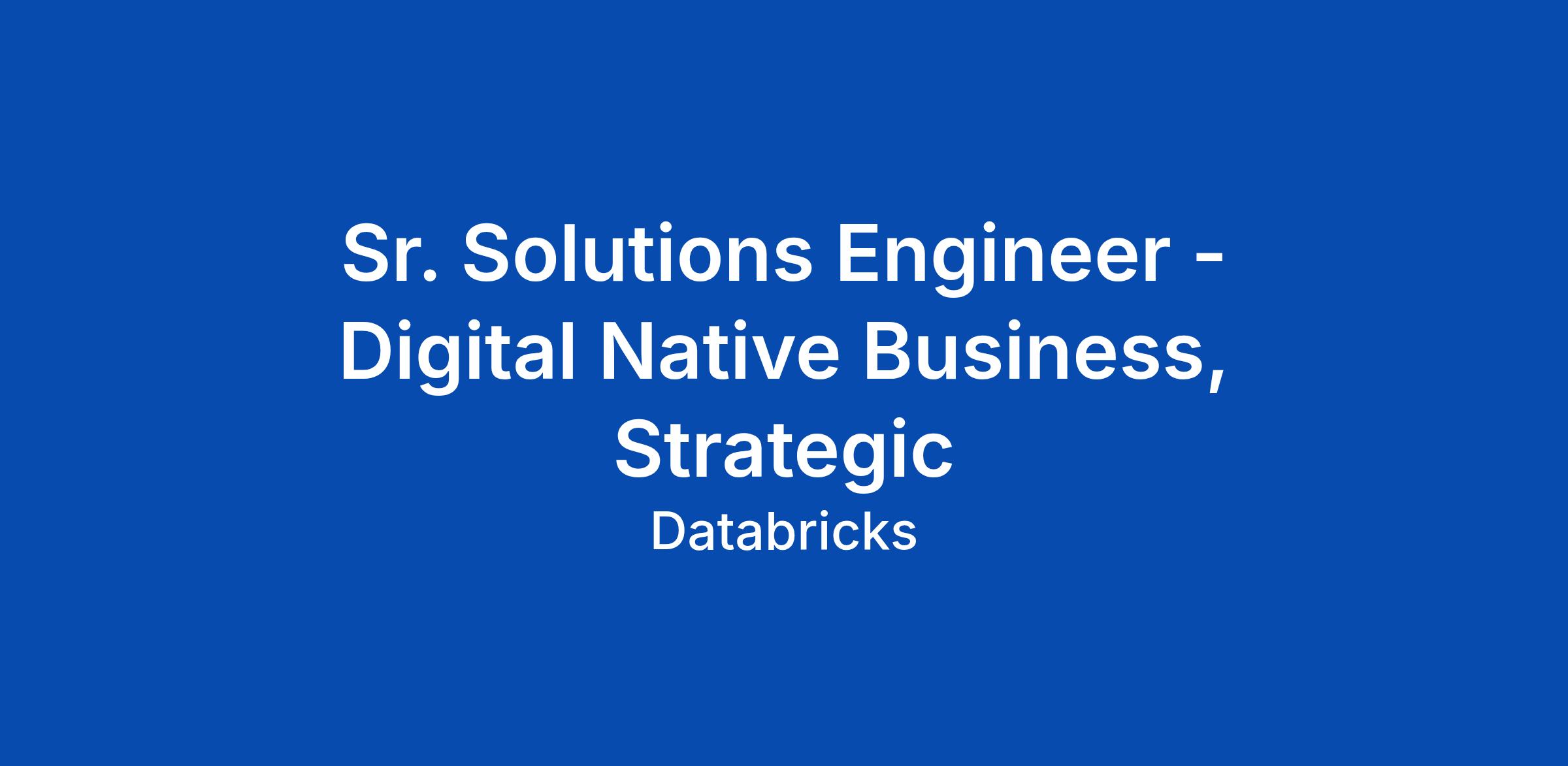 Sr. Solutions Engineer - Digital Native Business, Strategic