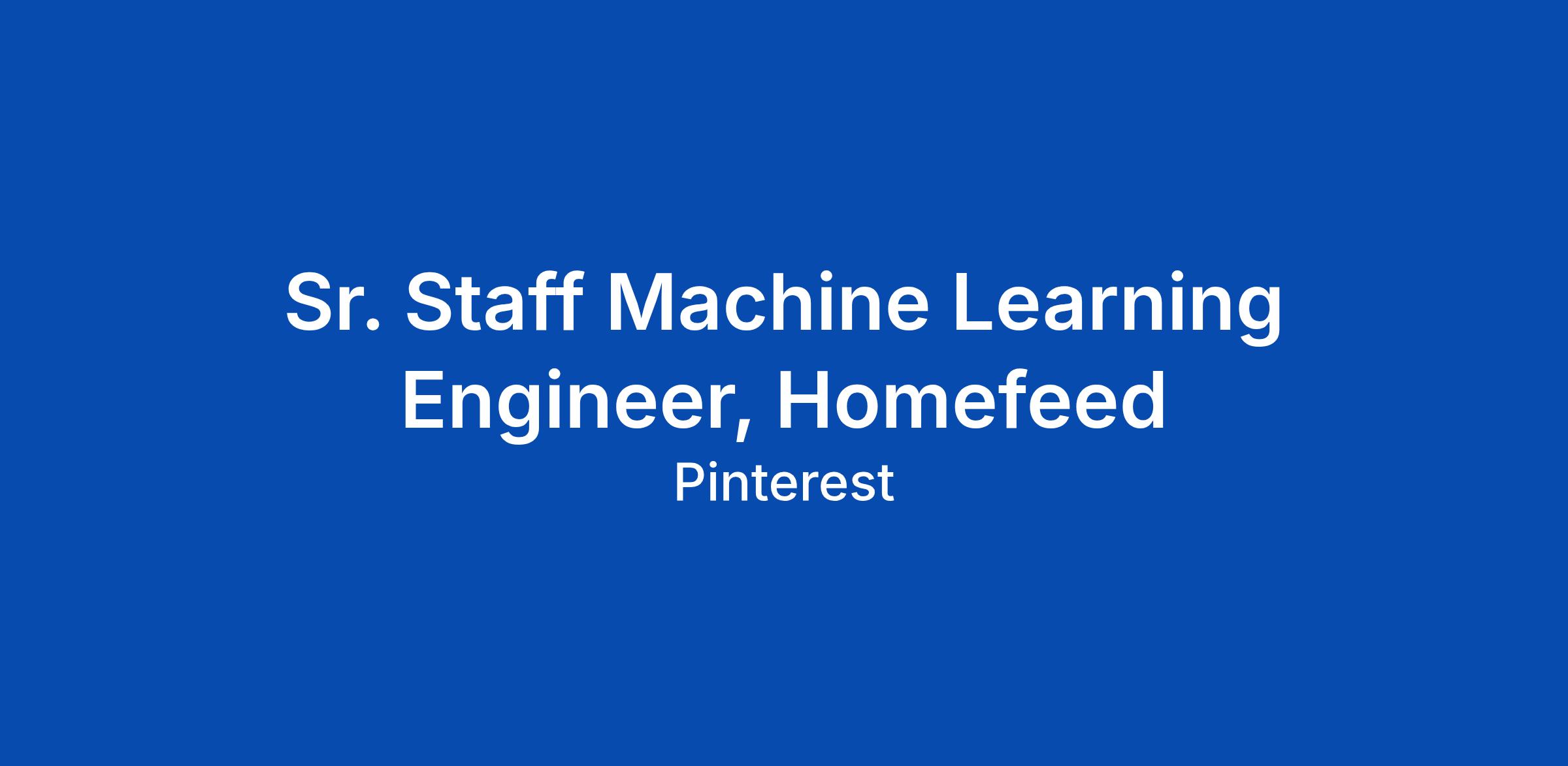 Sr. Staff Machine Learning Engineer, Homefeed