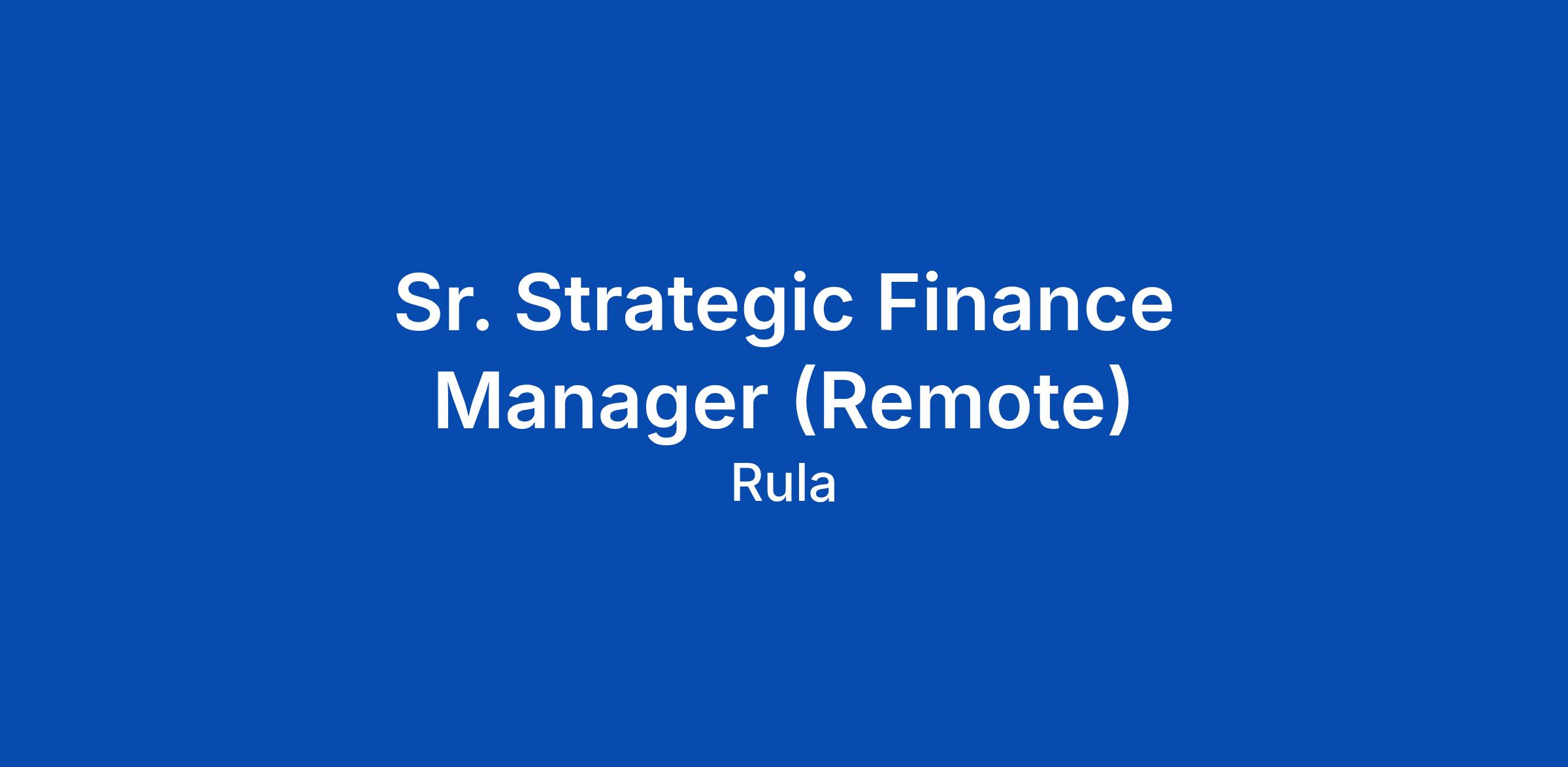 Sr. Strategic Finance Manager (Remote)