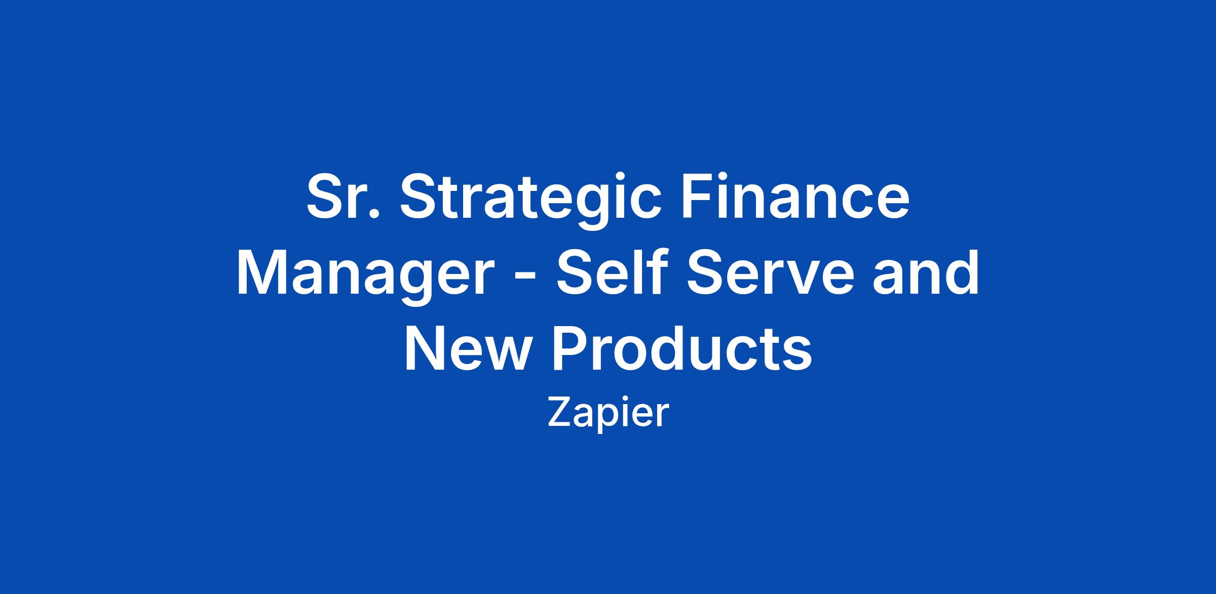 Sr. Strategic Finance Manager - Self Serve and New Products