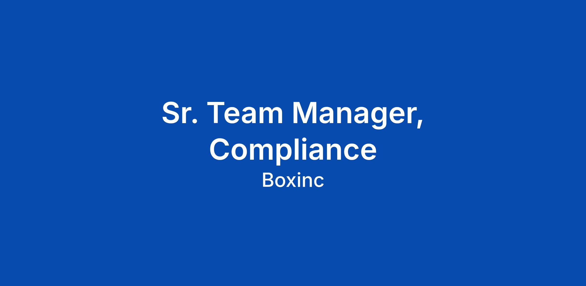 Sr. Team Manager, Compliance