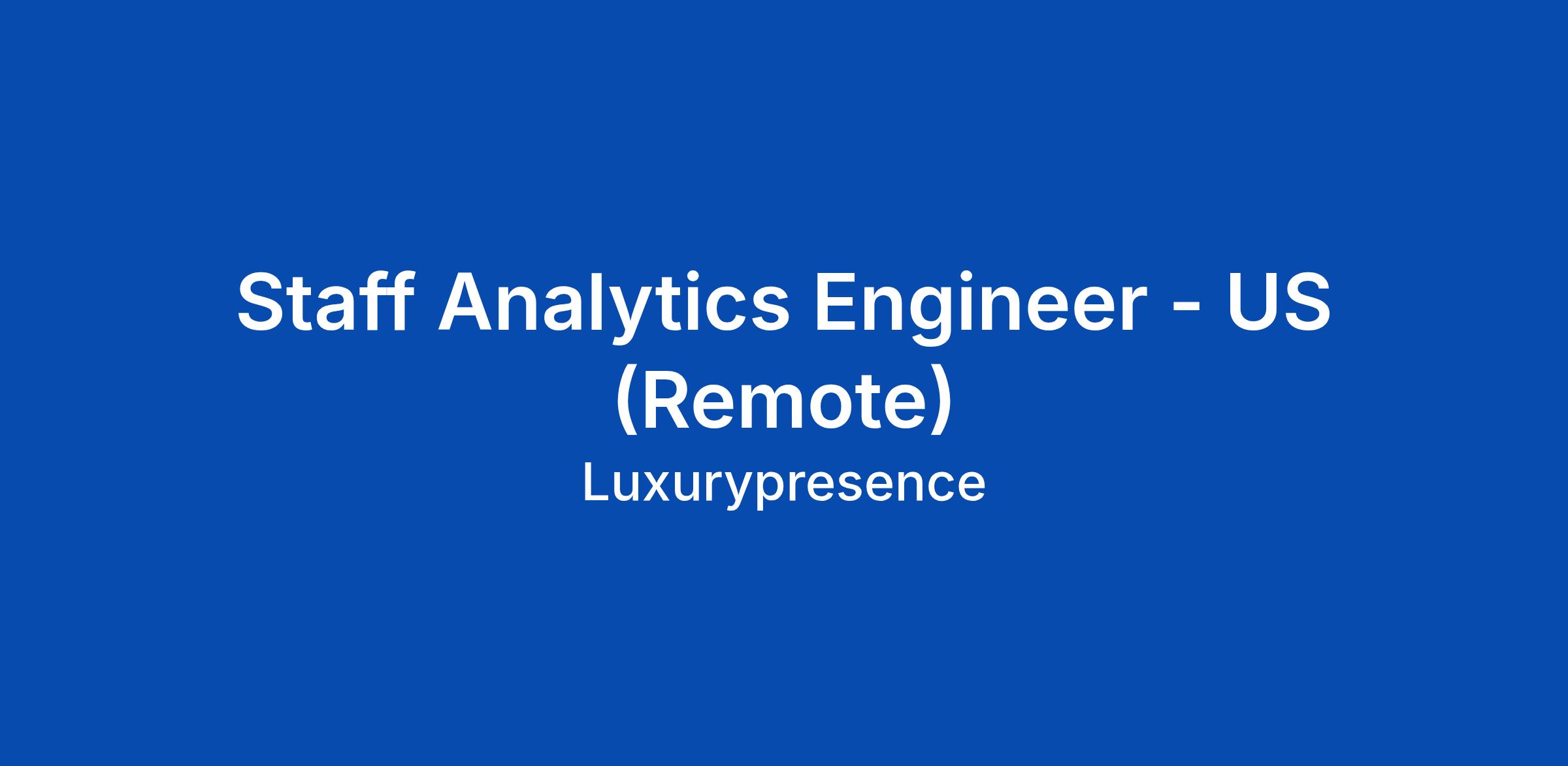 Luxury Presence is building the AI growth platform for real estate. Backed by Bessemer Venture Partners and other top investors, we're a Series C company on track to hit $100M in annual recurring revenue in the next six months. More than 87,000 real estate professionals, including over 30% of the WSJ Real Trends top 100 agents in the United States, use us to run and grow their business. The Opportunity We don't just use AI. We build with it, ship with it, and think with it. We're in the top 1% of companies applying AI effectively, not just to our products, but to how we build them. With an unlimited budget for Anthropic tokens, our engineers use AI agents to write, review, and ship production code every day. We're building toward a world where humans design systems and AI builds them, and we're already further along that path than almost anyone else. As a Staff Analytics Engineer, you'll be a technical leader at the center of this transformation. You'll shape platform architecture, drive AI-powered product delivery, and raise the bar for what a small, AI-augmented engineering team can accomplish. This is a role for someone who already lives in their terminal with AI, who has strong