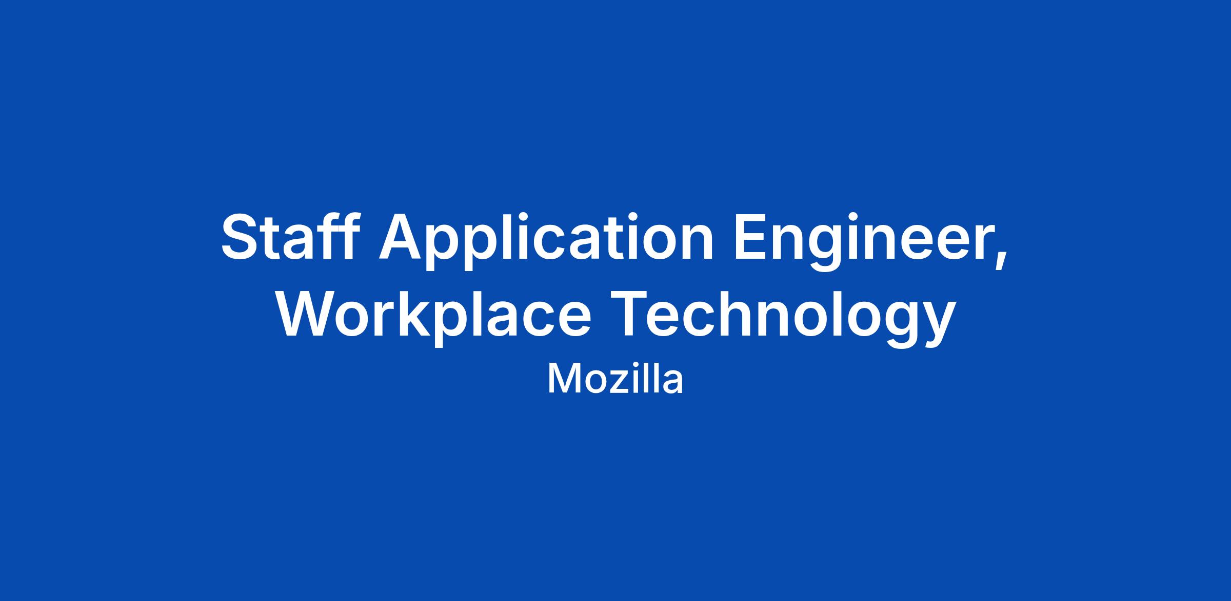 Staff Application Engineer, Workplace Technology