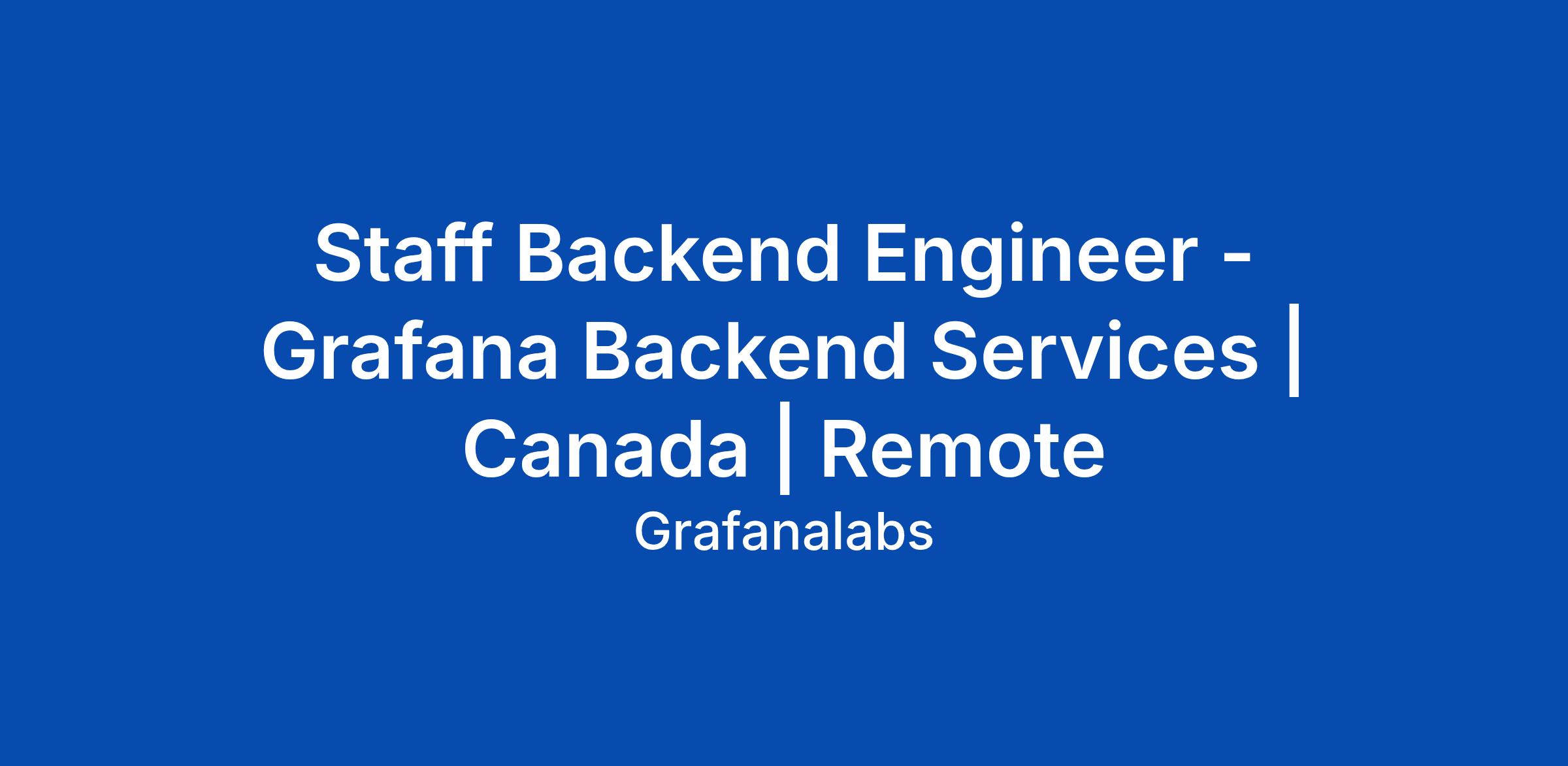 Staff Backend Engineer - Grafana Backend Services | Canada | Remote