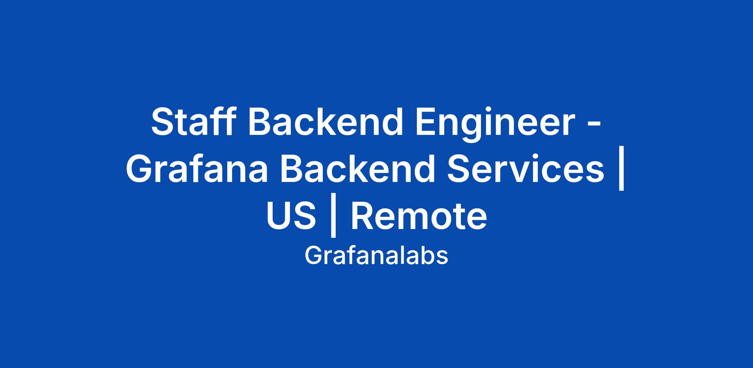 Staff Backend Engineer - Grafana Backend Services | US | Remote