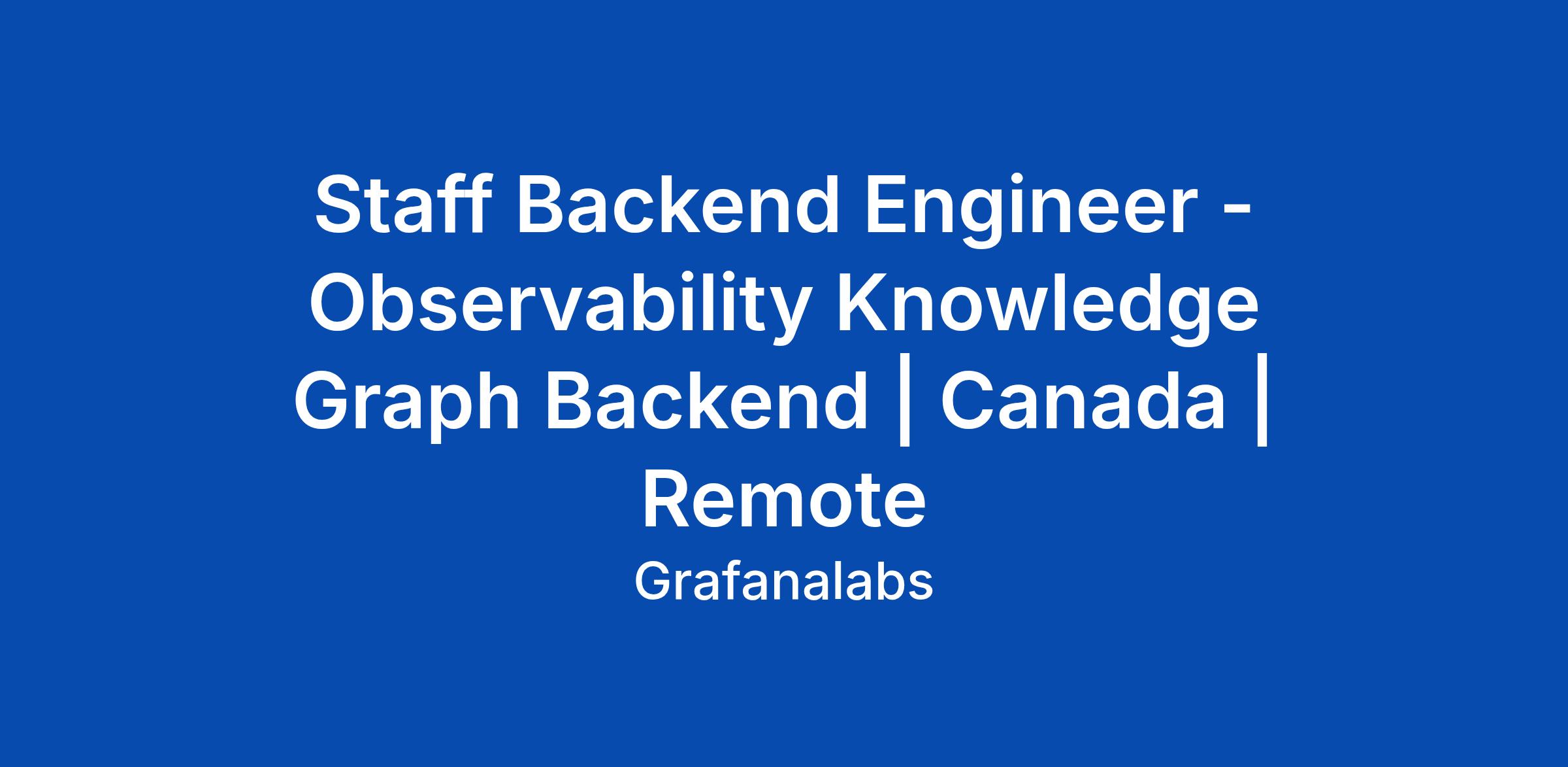 Staff Backend Engineer - Observability Knowledge Graph Backend | Canada | Remote