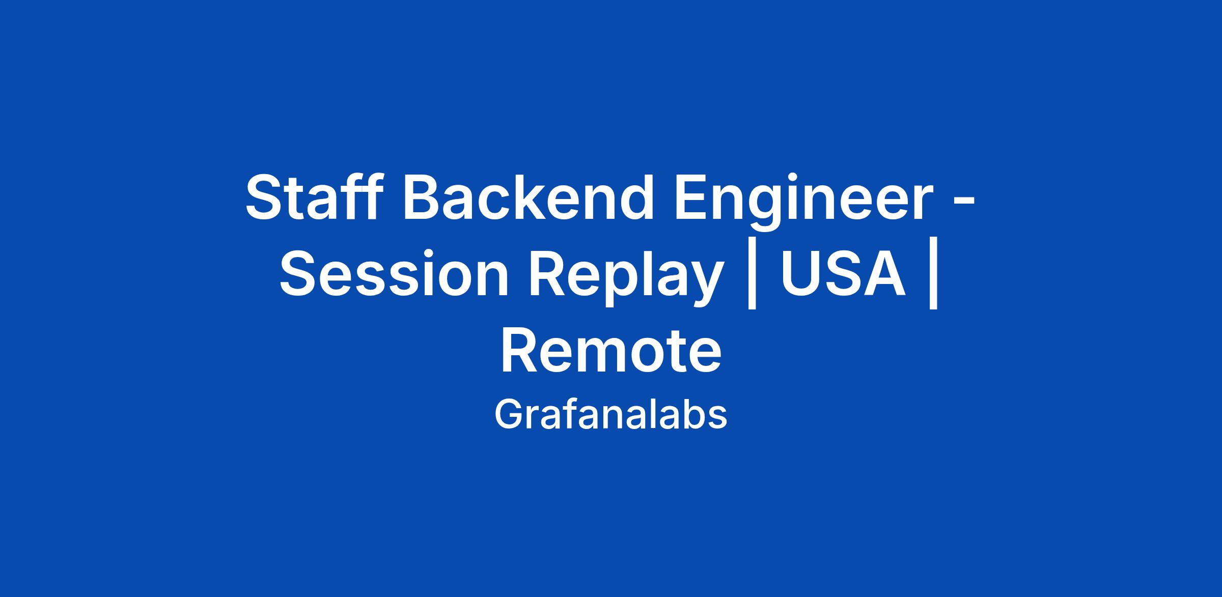 Staff Backend Engineer - Session Replay | USA | Remote