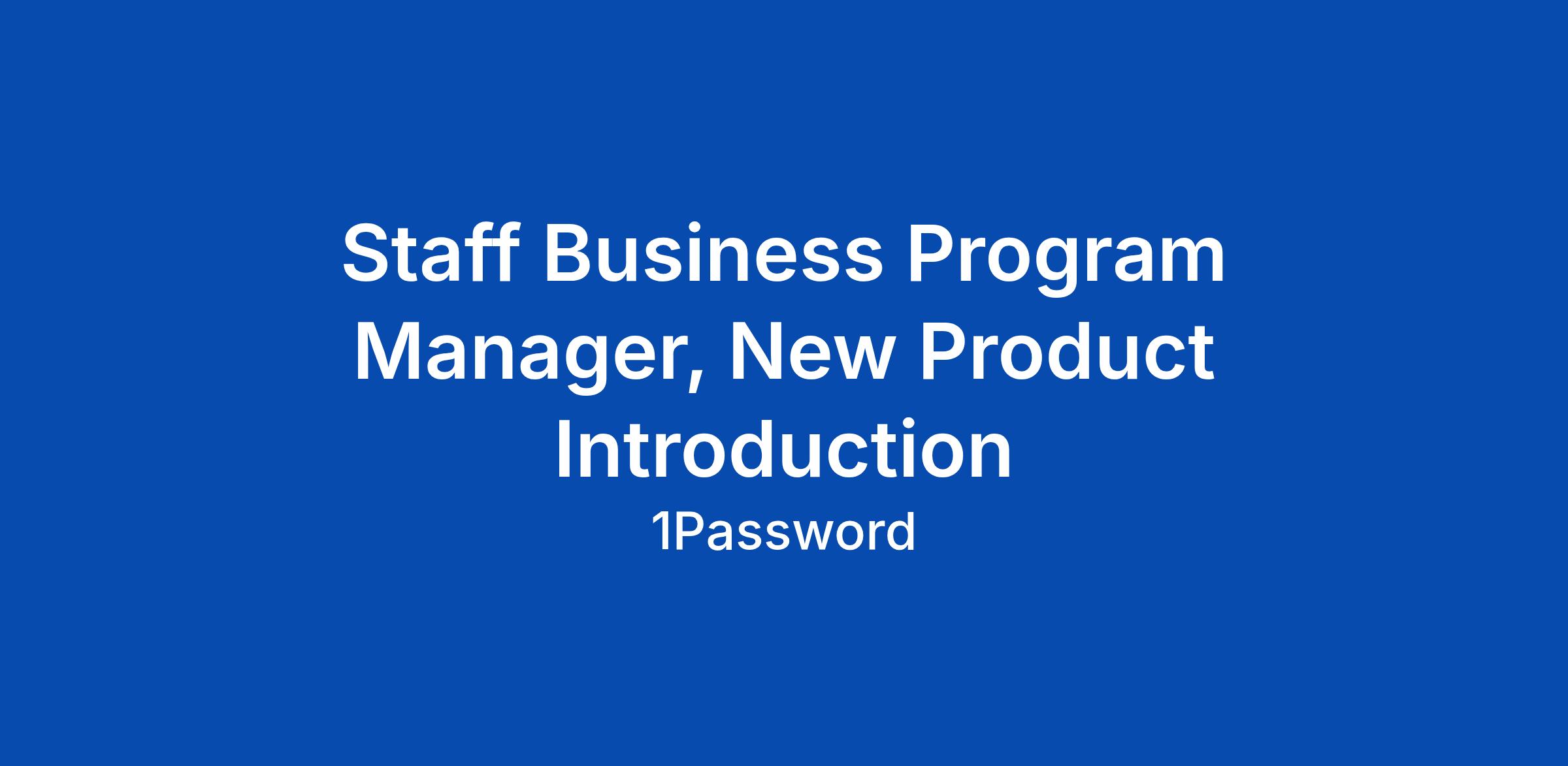 Staff Business Program Manager, New Product Introduction