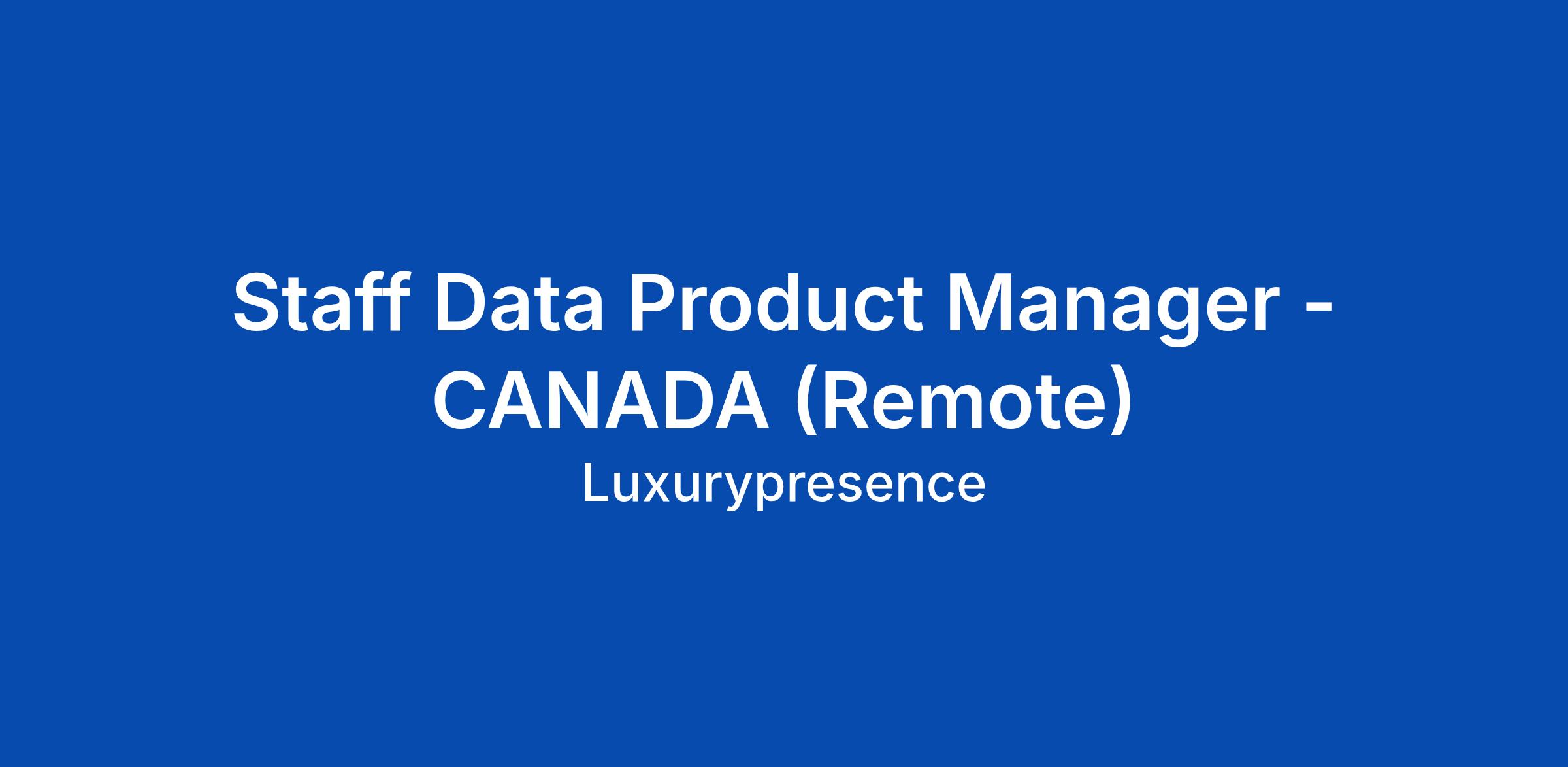 Staff Data Product Manager - CANADA (Remote)
